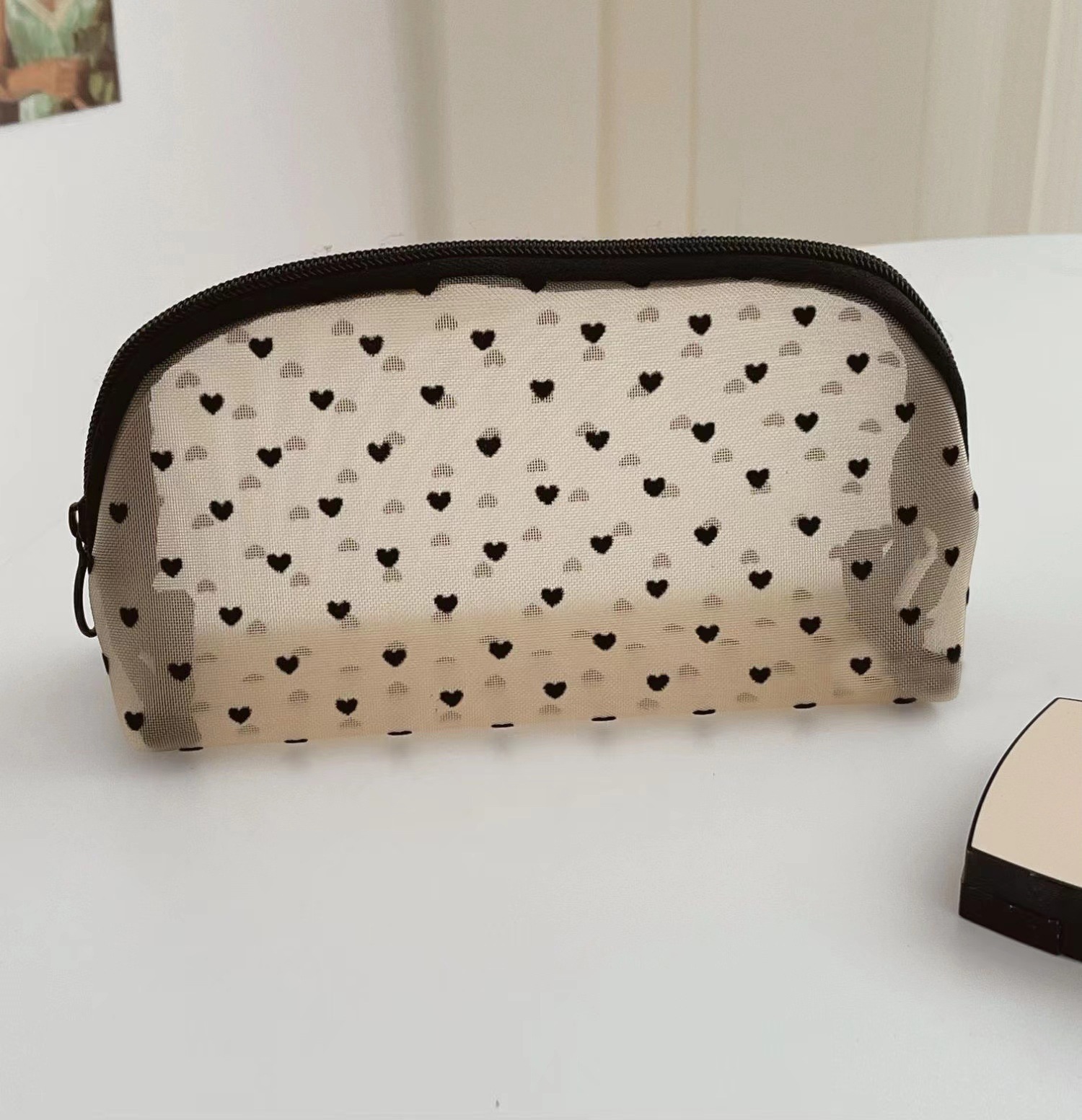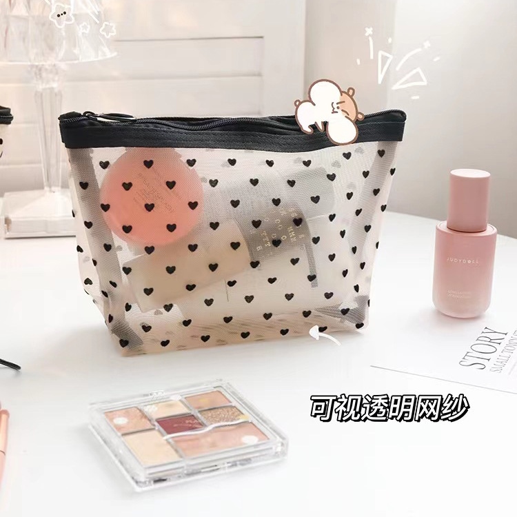 春コスメポーチ かわいい 母の日プレゼント 愛らしい植毛メッシュ化粧品収納バッグ学生向け多機能大容量ポータブル通気性ジッパー式小型バッグ