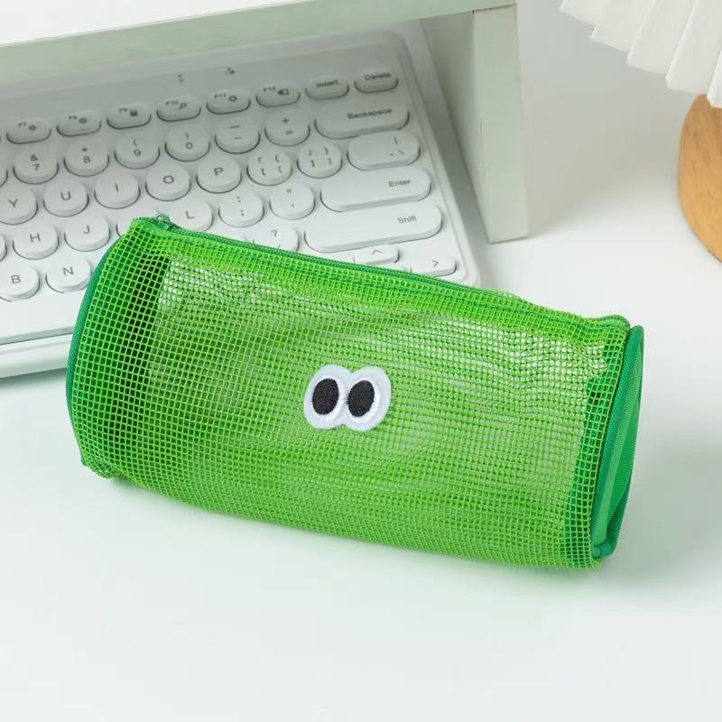 春コスメポーチ かわいい 母の日プレゼント 豆豆眼円筒型メッシュペンケースかわいい大きな目が付いた文房具バッグ携帯用化粧品・洗面用小物入れ
