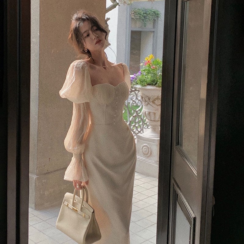 パーティードレス ウエディングドレス 長袖 白 二次会 結婚式ドレス パーティードレス 安い エンパイア フォトウエ