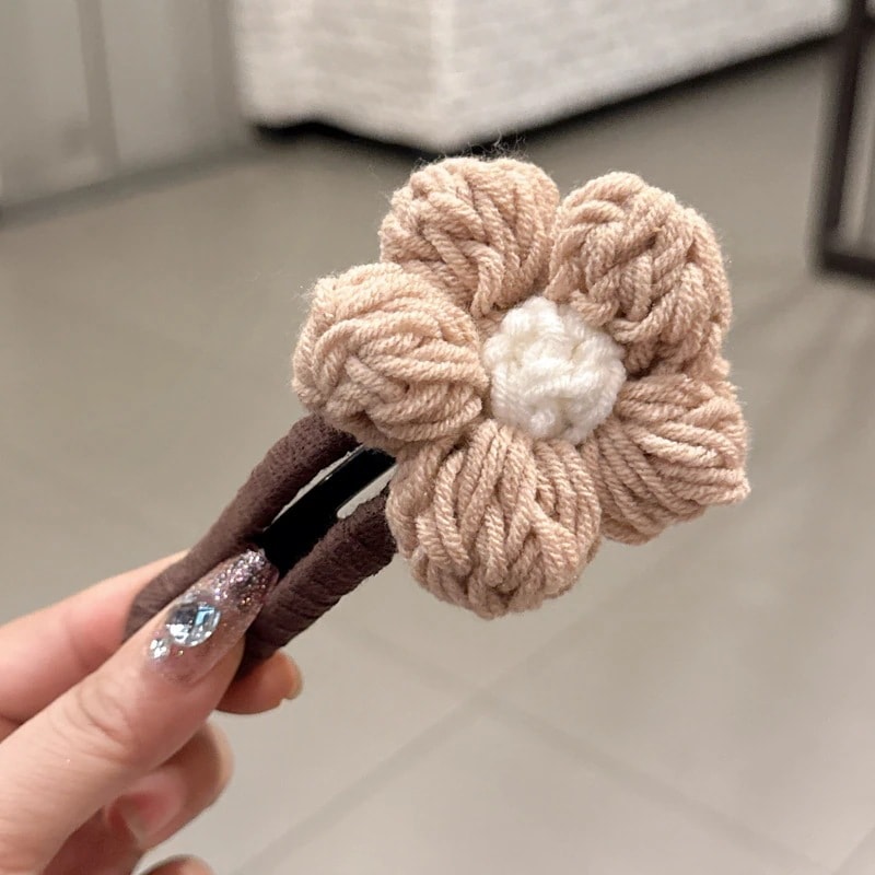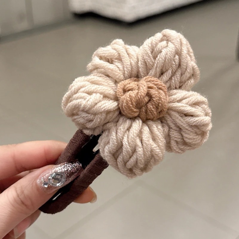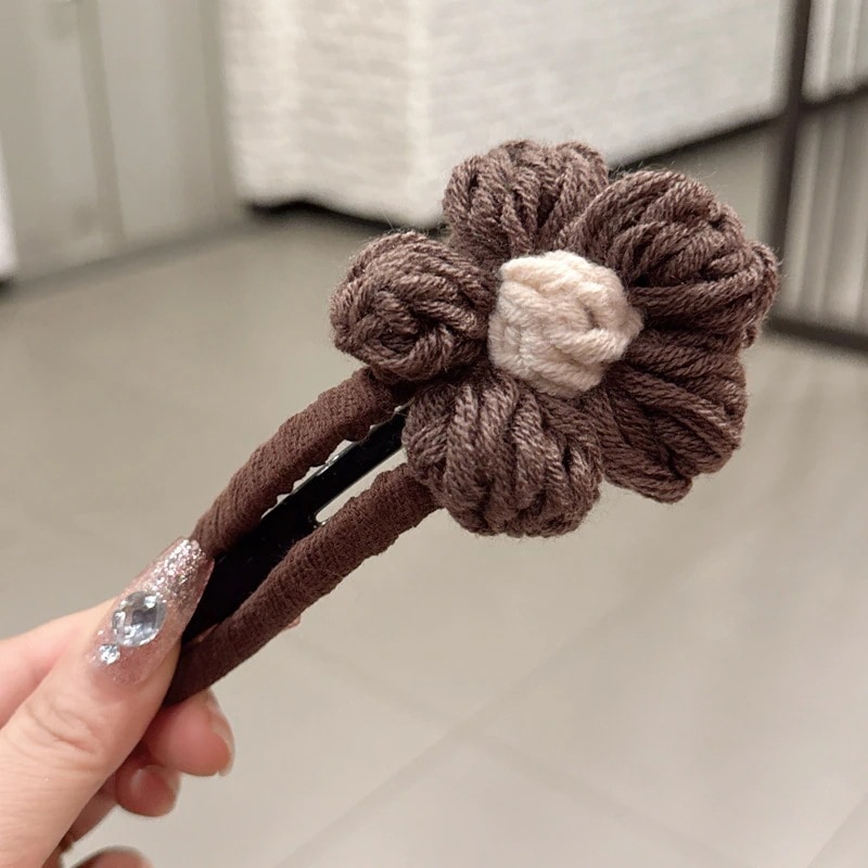 レトロなミルクコーヒーウールの花のヘアピン女の子のとの大きなダックビルクリップ後頭部の甘いシングルクリップ帽子工場