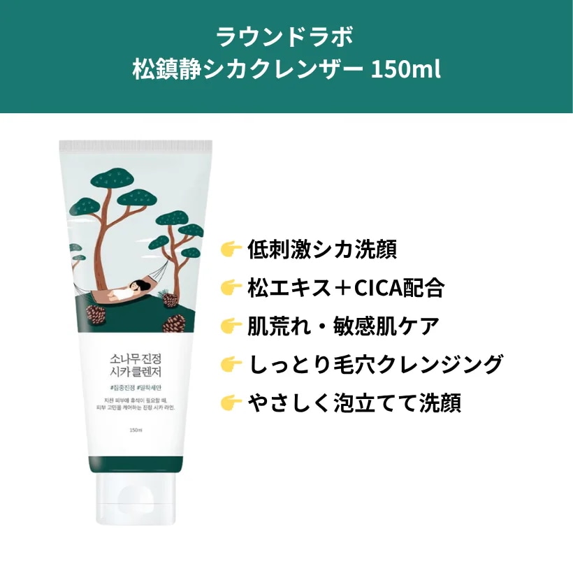 ROUND LAB【2点セット】松鎮静シカクレンザー 150mL +日焼け止め(3種中 選択1)/ クレンジング+シカサンクリーム / サンスティック SPF50+ PA++++/毛穴クレンジング/韓国コスメ