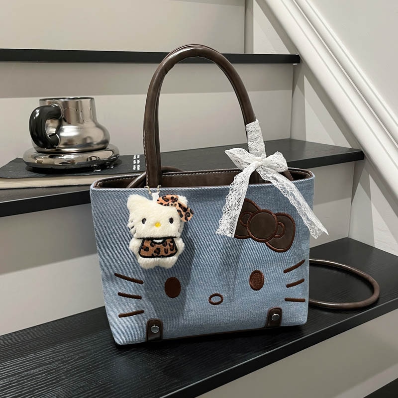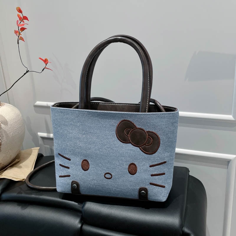 かわいい刺繍萌え顔KT猫少女カウボーイ大容量ハンドバッグ新型洋風百合菜バスケット斜めショルダーバッグ