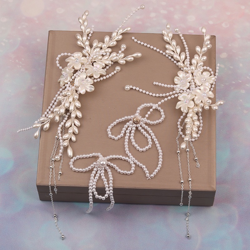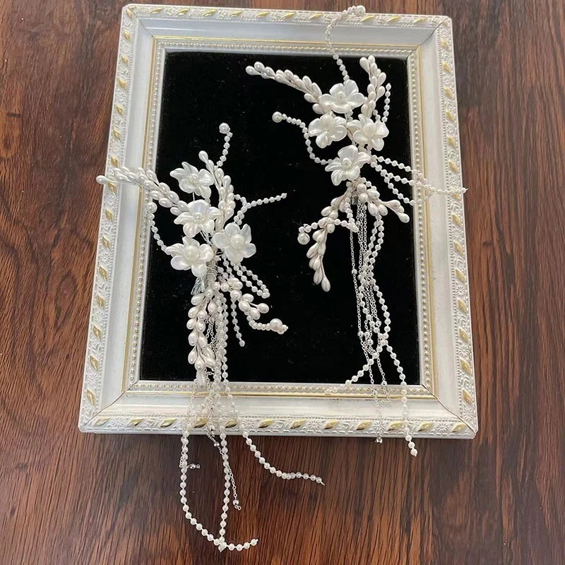 新作ハンドメイドパールフラワーフリンジヘアアクセサリー森系ブライダルアクセサリーアップスタイル用ヘアピンブライダルメイク用メインウェディングドレス