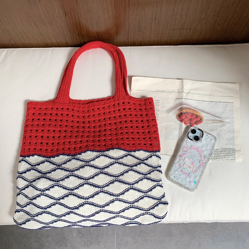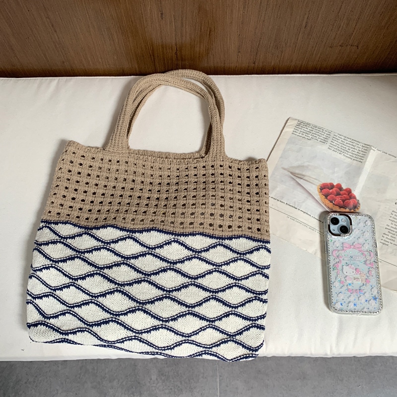 新作秋の森系文芸気だるい風透かし編みバッグ流行着回しショルダーバッグニットバッグ