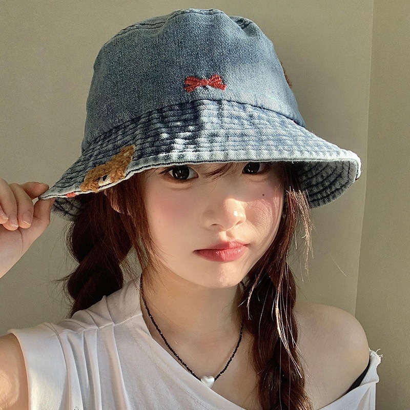 新しい日本のかわいい甘い熊はカウボーイの漁師の帽子を刺繍します