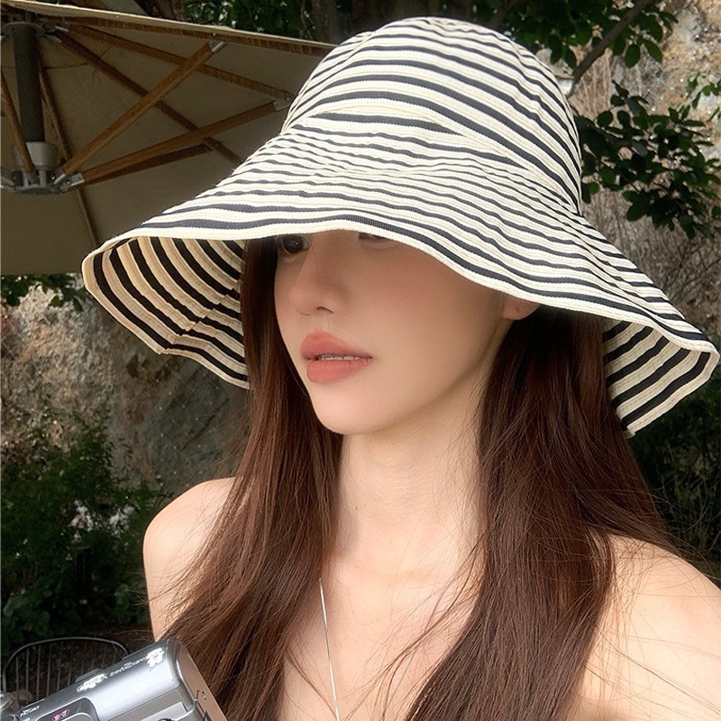 韓国版はストライプの漁師の帽子の子供の新型の春夏は簡単で軒の日よけの帽子は日焼け止めして紫外線を防ぎます