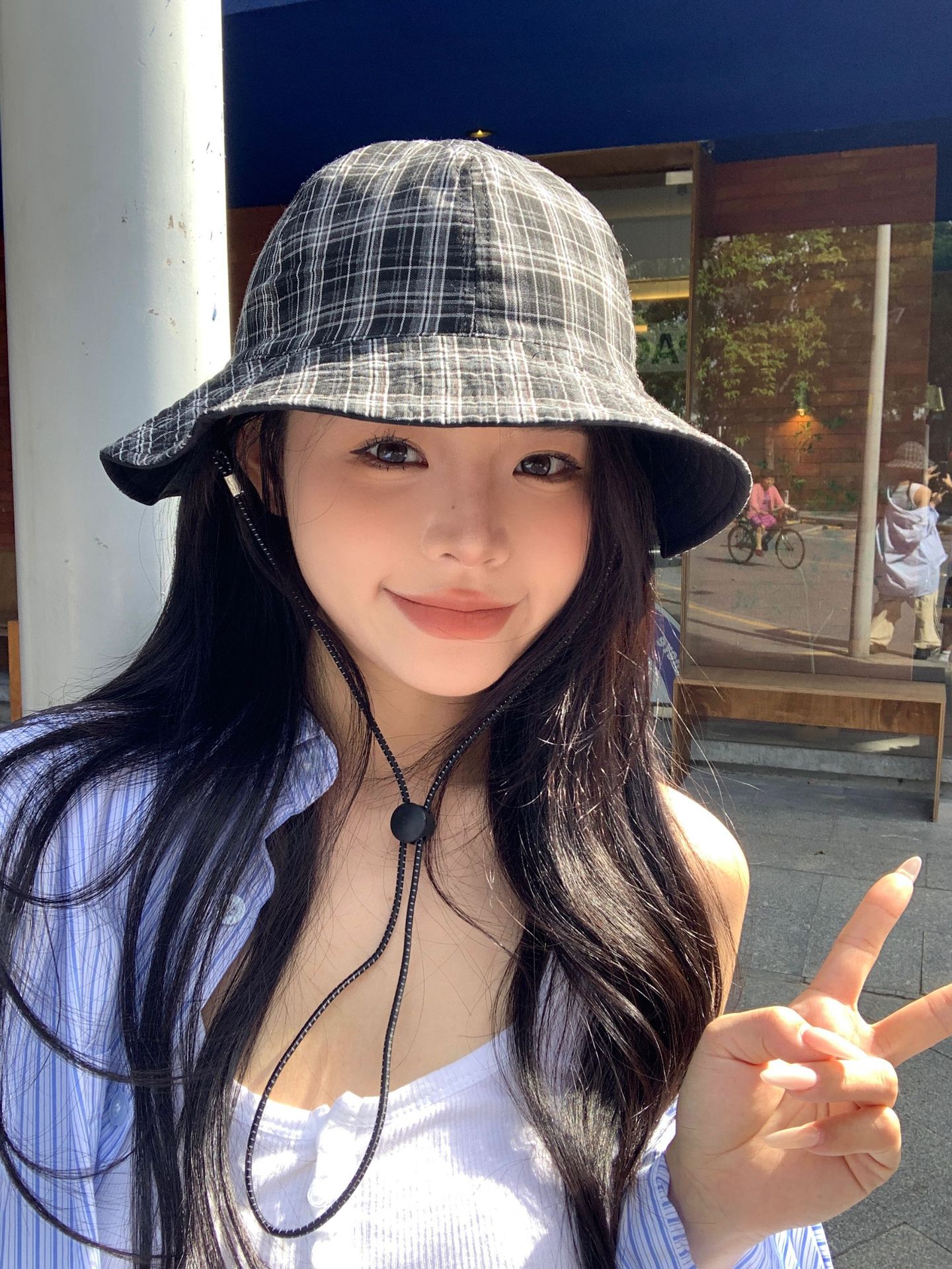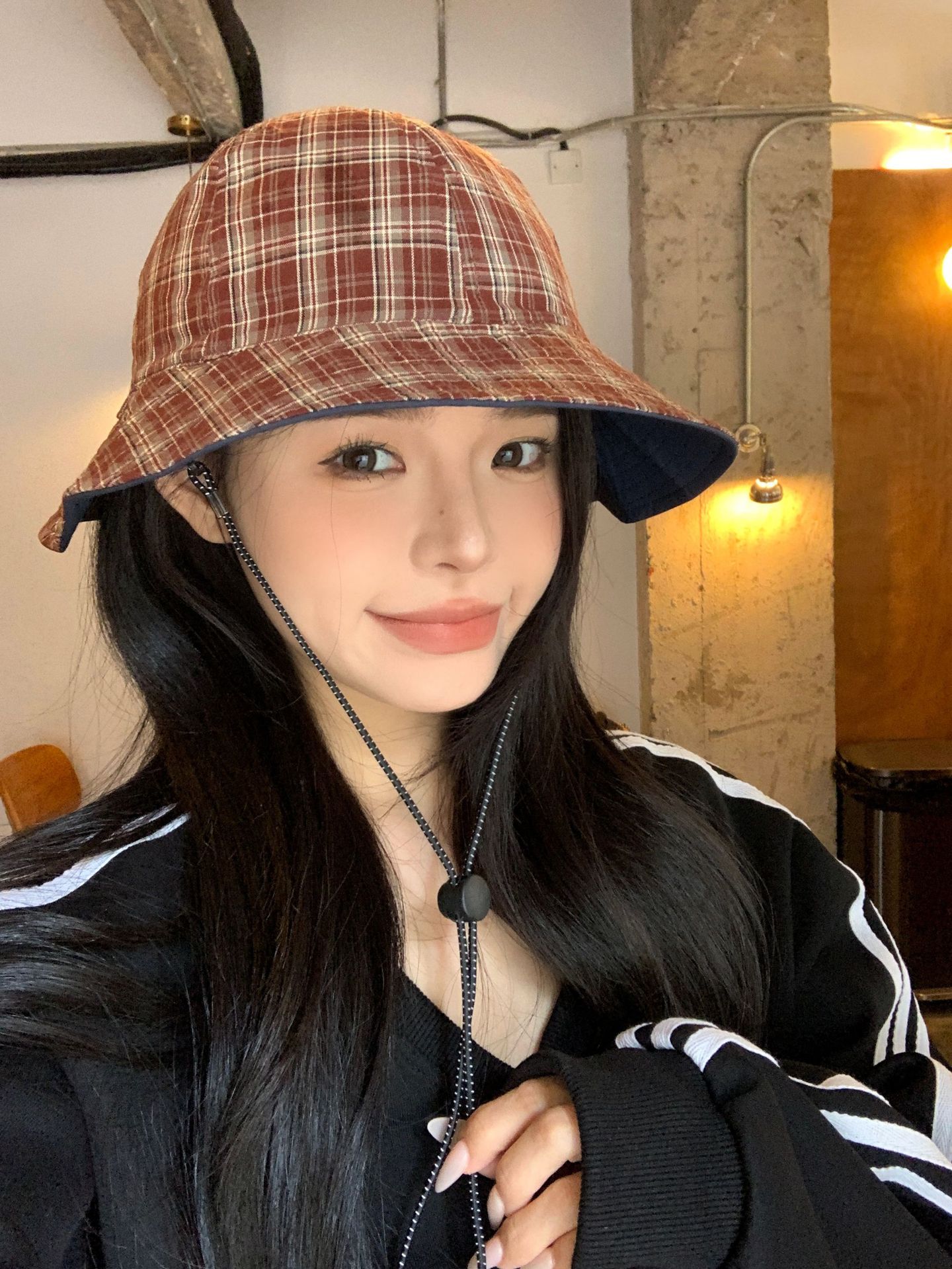 韓国版格子縞漁師帽男女復古文芸百合春夏戸外日よけ日焼け止め軽薄日よけ帽