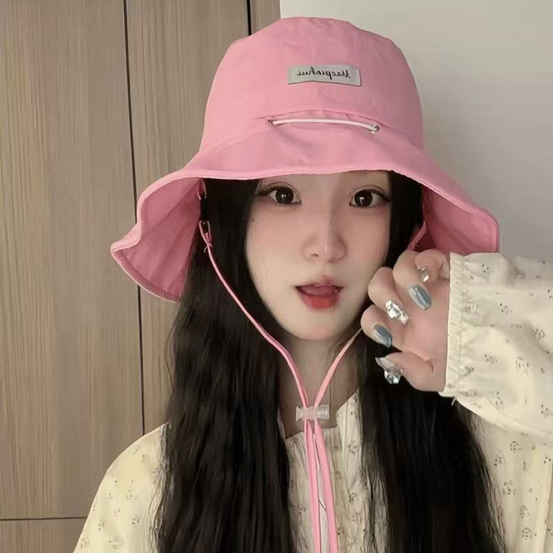 新型マカロン色屋外漁師帽子供春日よけ日焼け止め盆帽アルファベット布