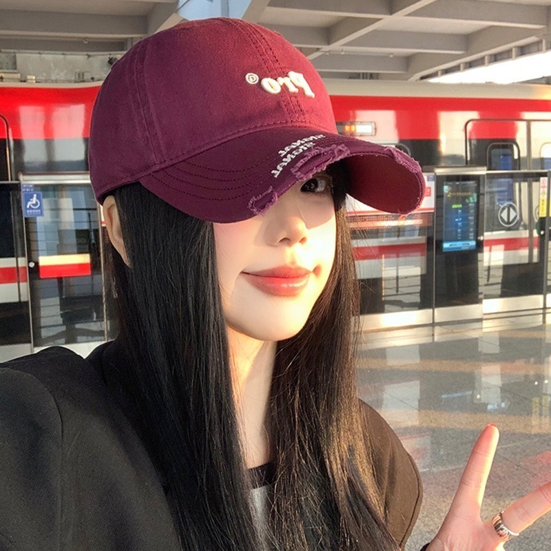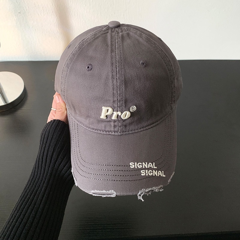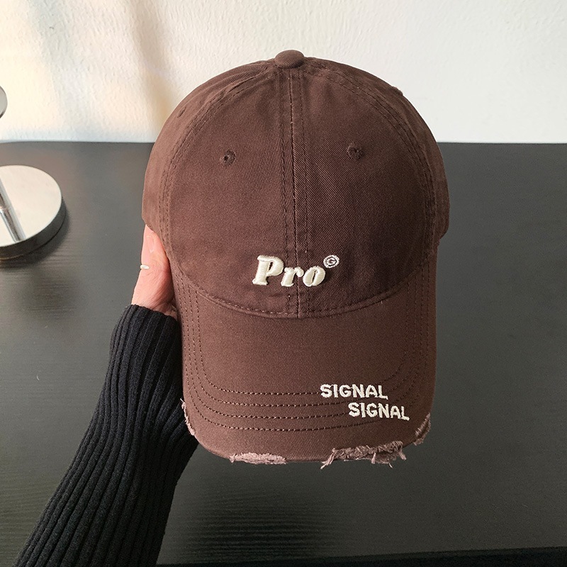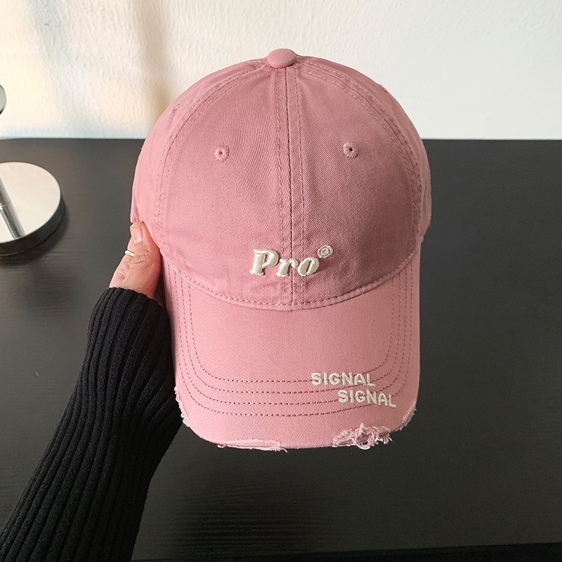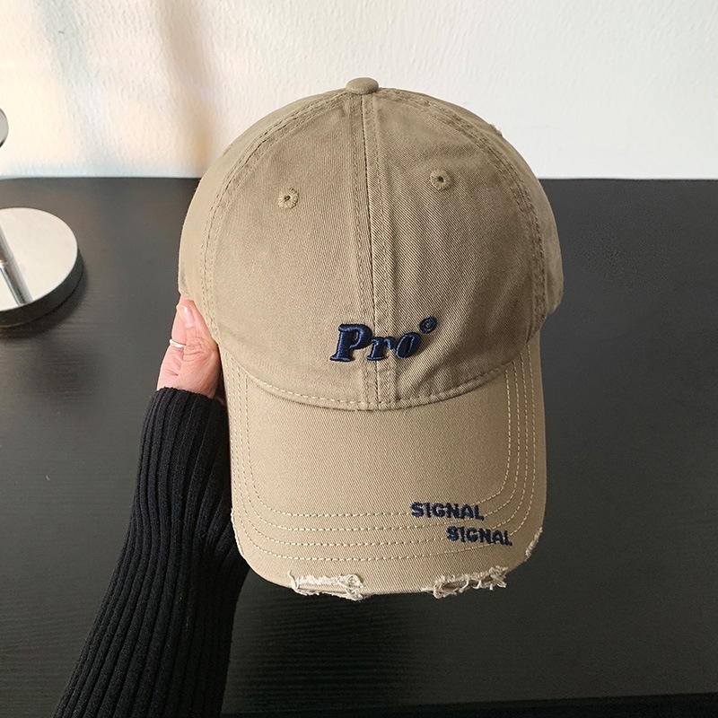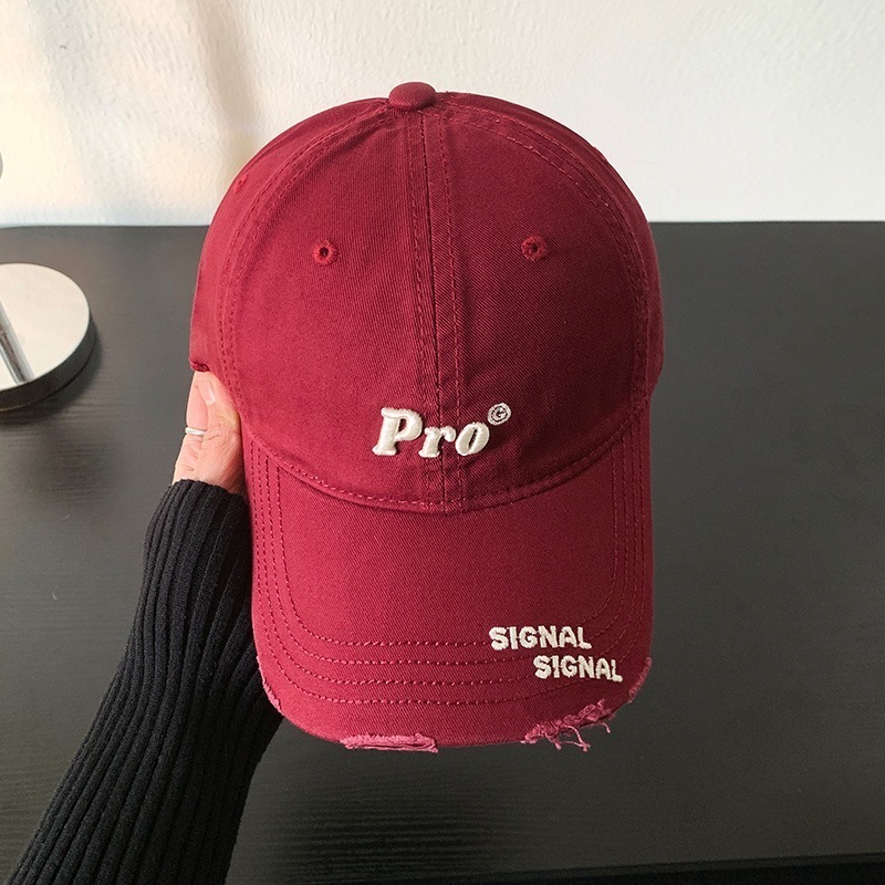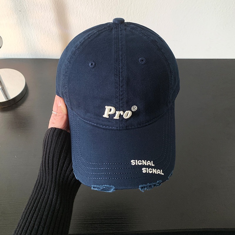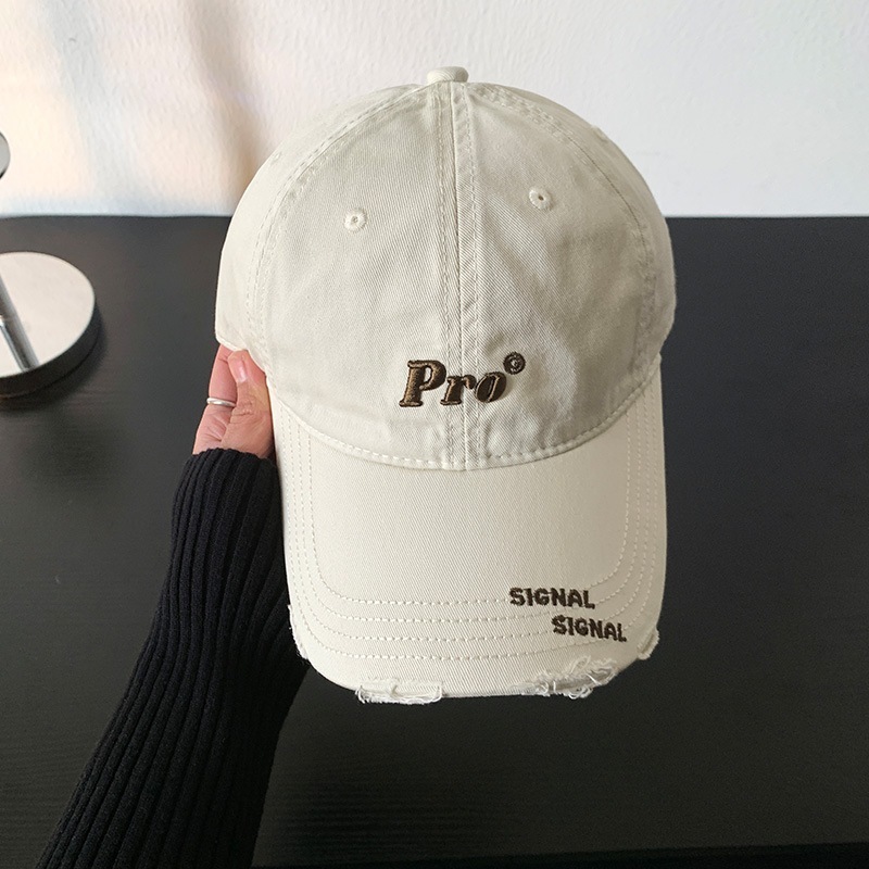 穴を割ってアルファベットの野球帽を刺繍します