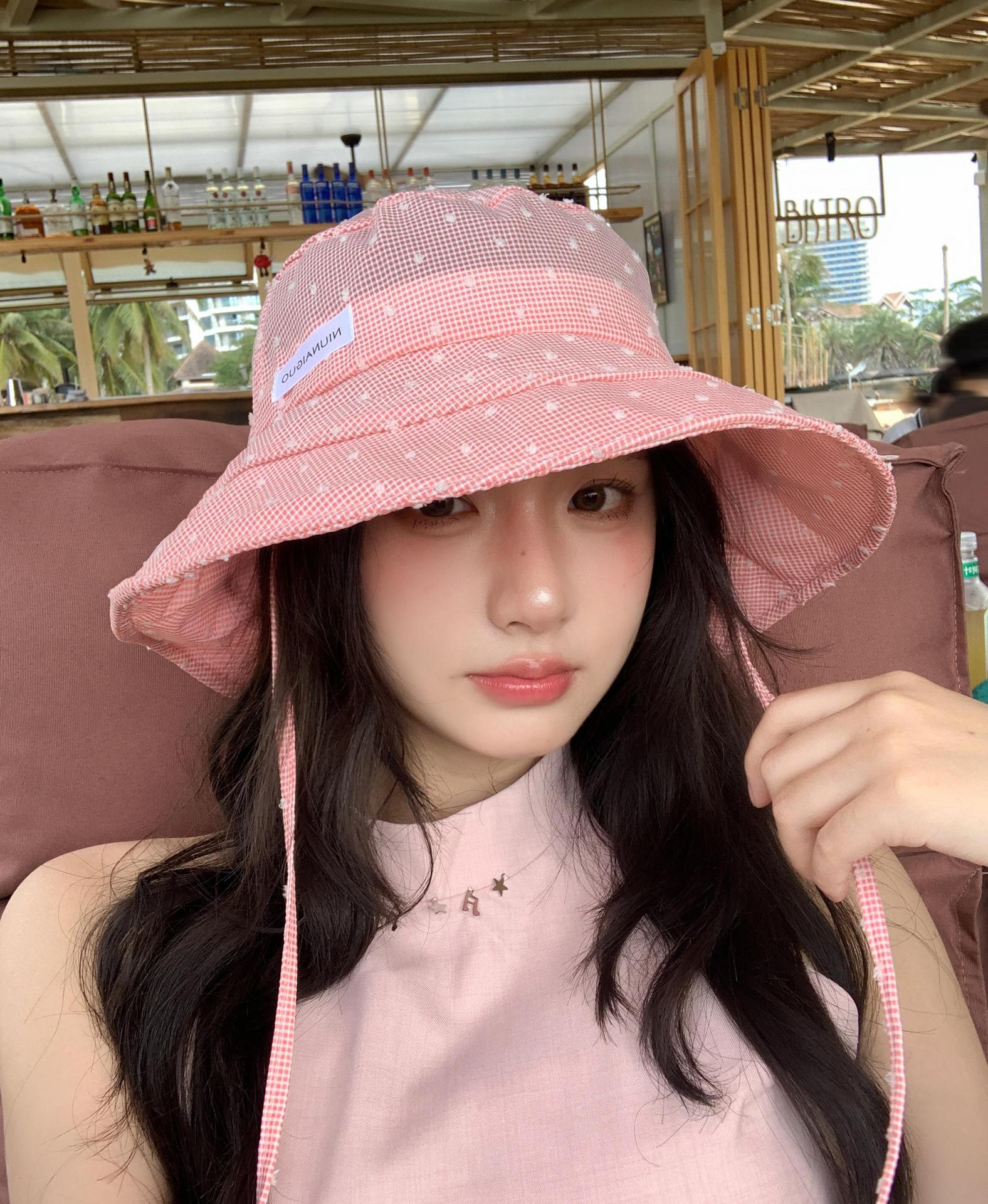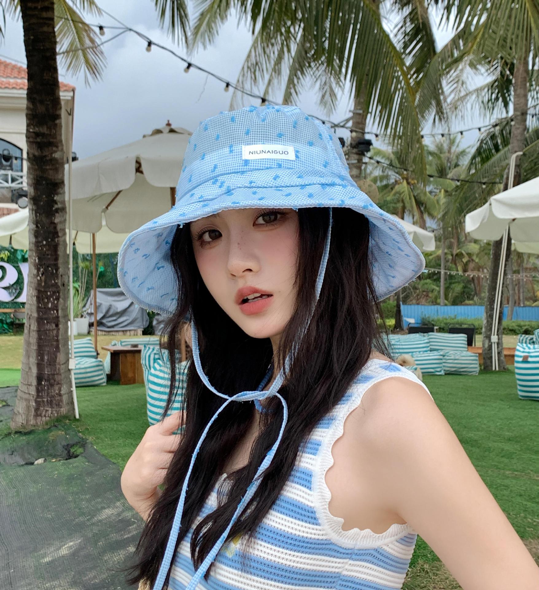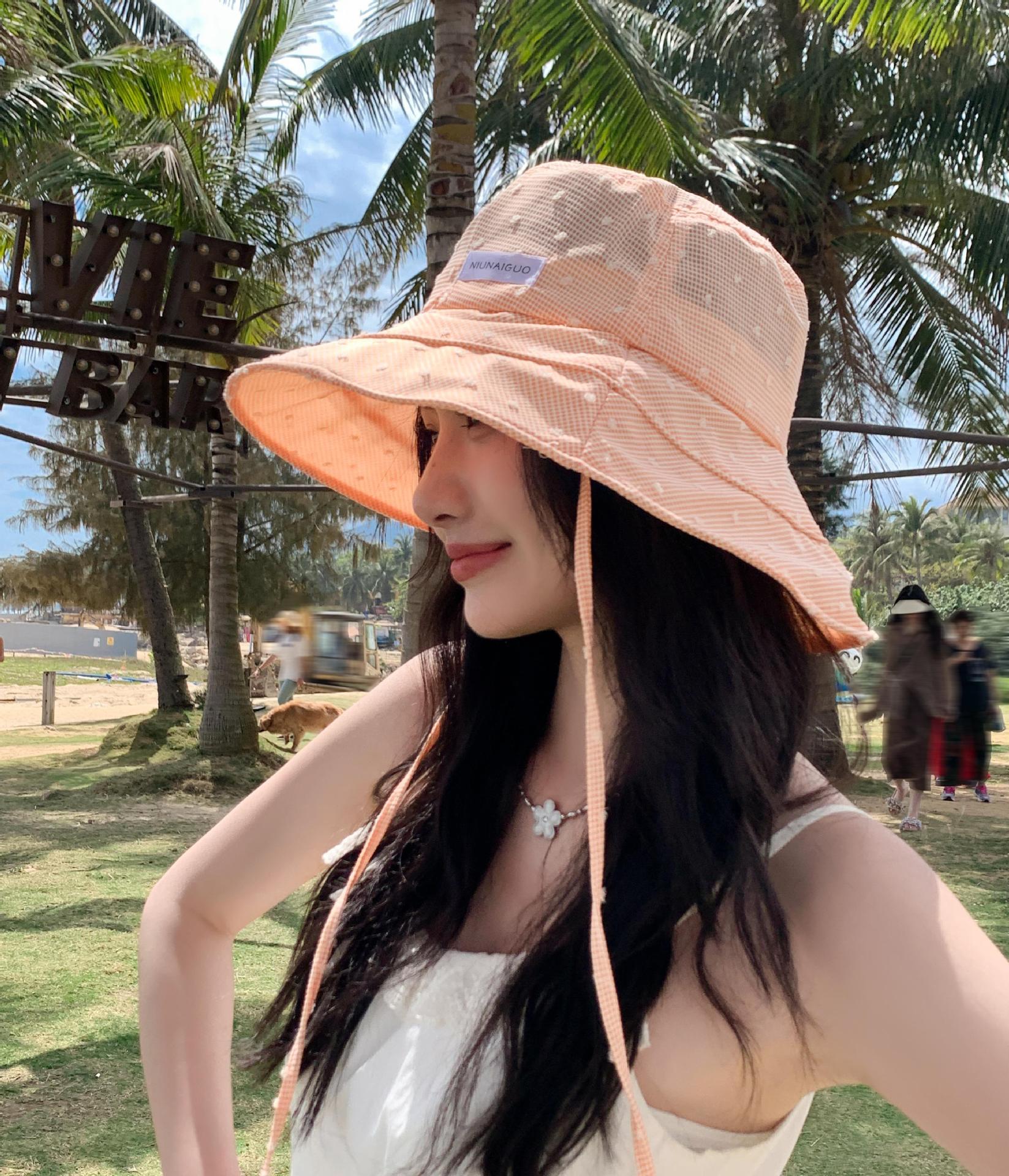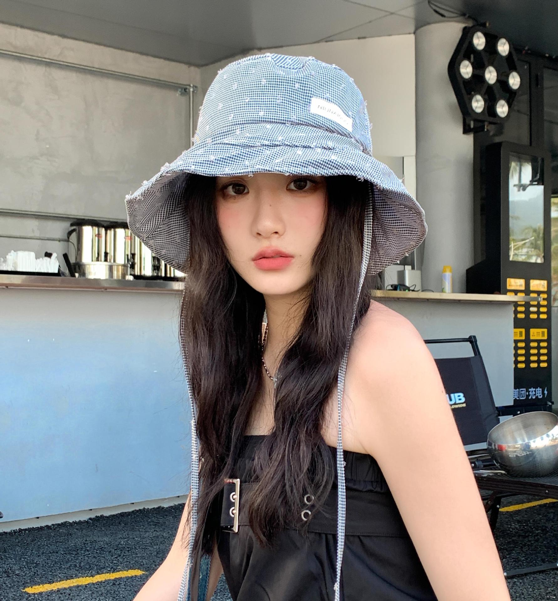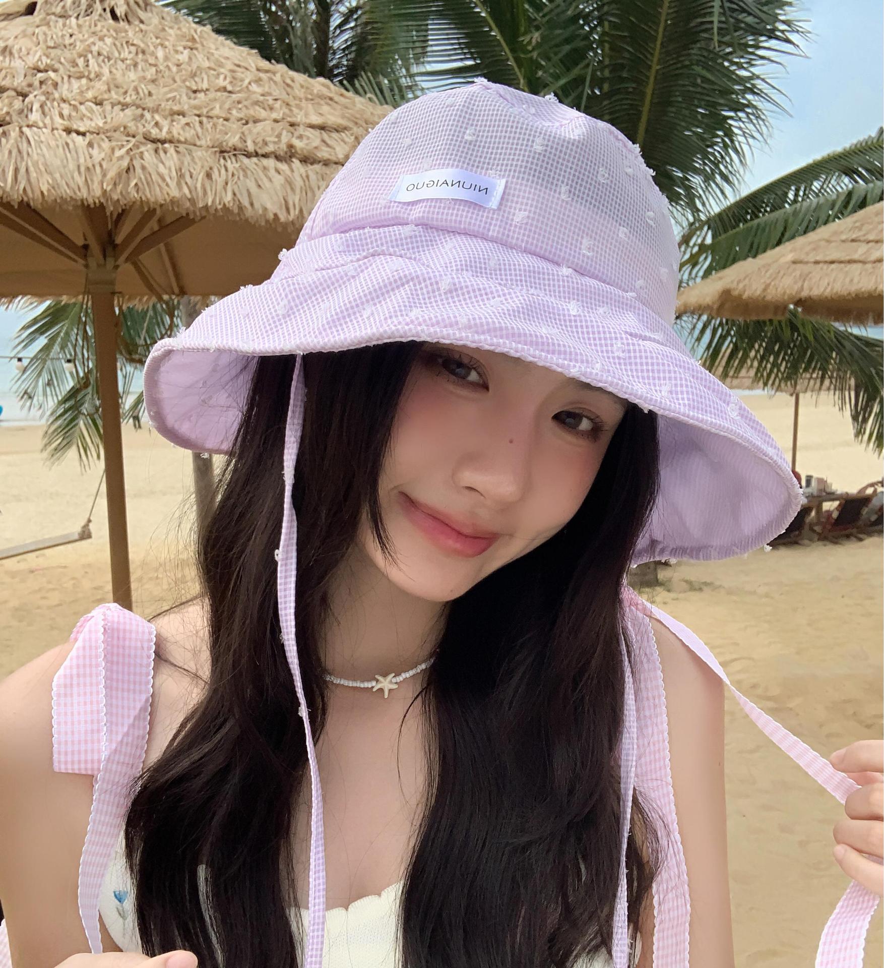 韓系の格子縞の大きいつばの漁師の帽子の女性の夏の韓国版は旅行に出かけて紫外線の日よけの帽子の日よけを防ぎます