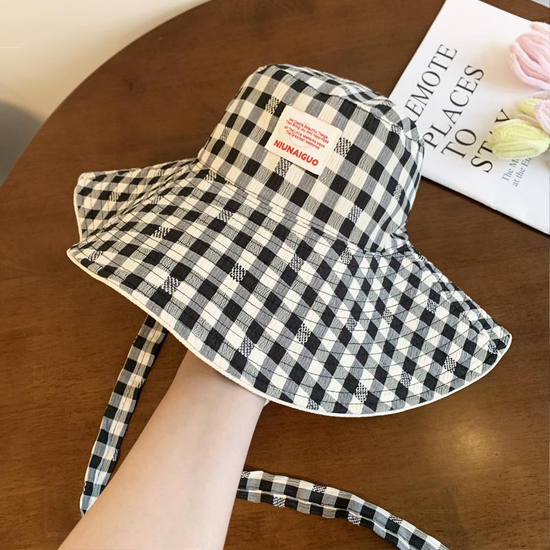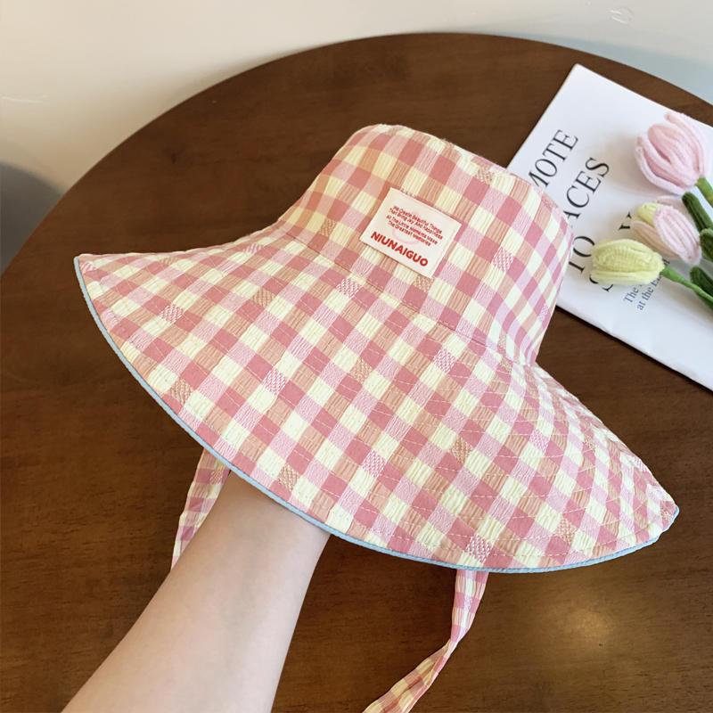 広い縁に日よけ付き漁師帽夏のつば格子日よけ帽両面紫外線日焼け止め日よけ帽子帽子