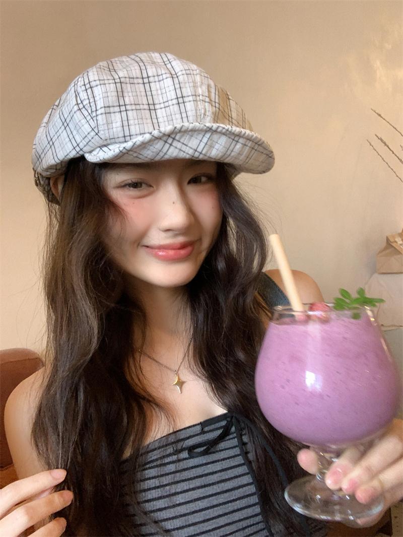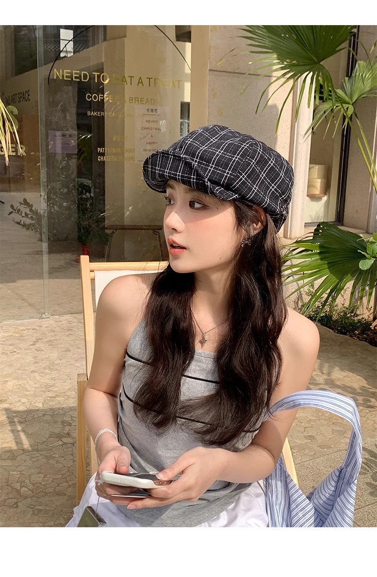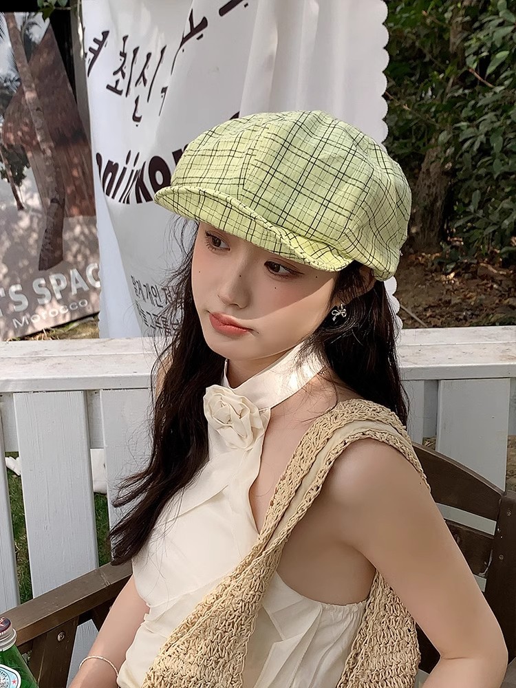 レトロな格子の雲のベレー帽の女性の春の新型の顔の小さい画家の帽子の大きい頭は八角の帽子を囲んでいます
