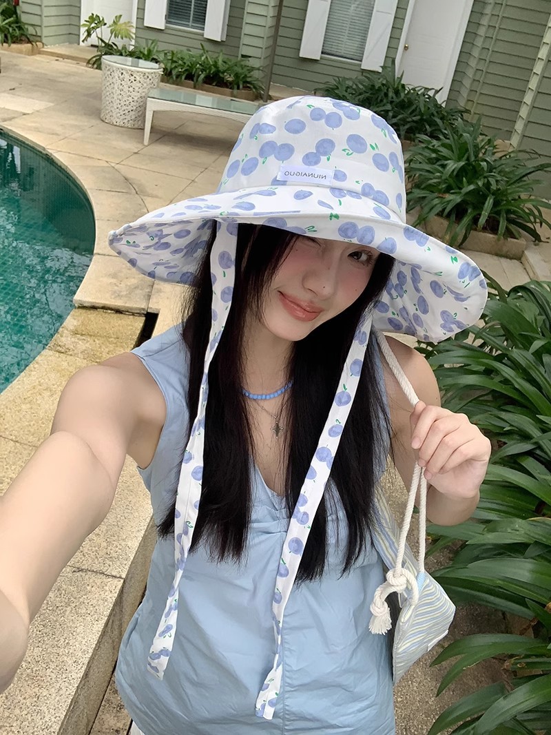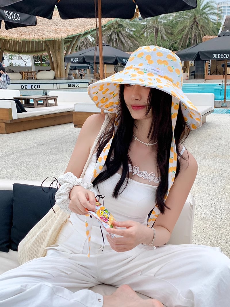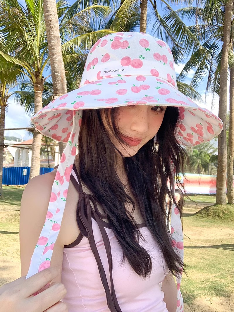 甘い果物のストラップ付きの大きなつばの漁師帽女性の新型春夏の日焼け止めの日よけ帽子