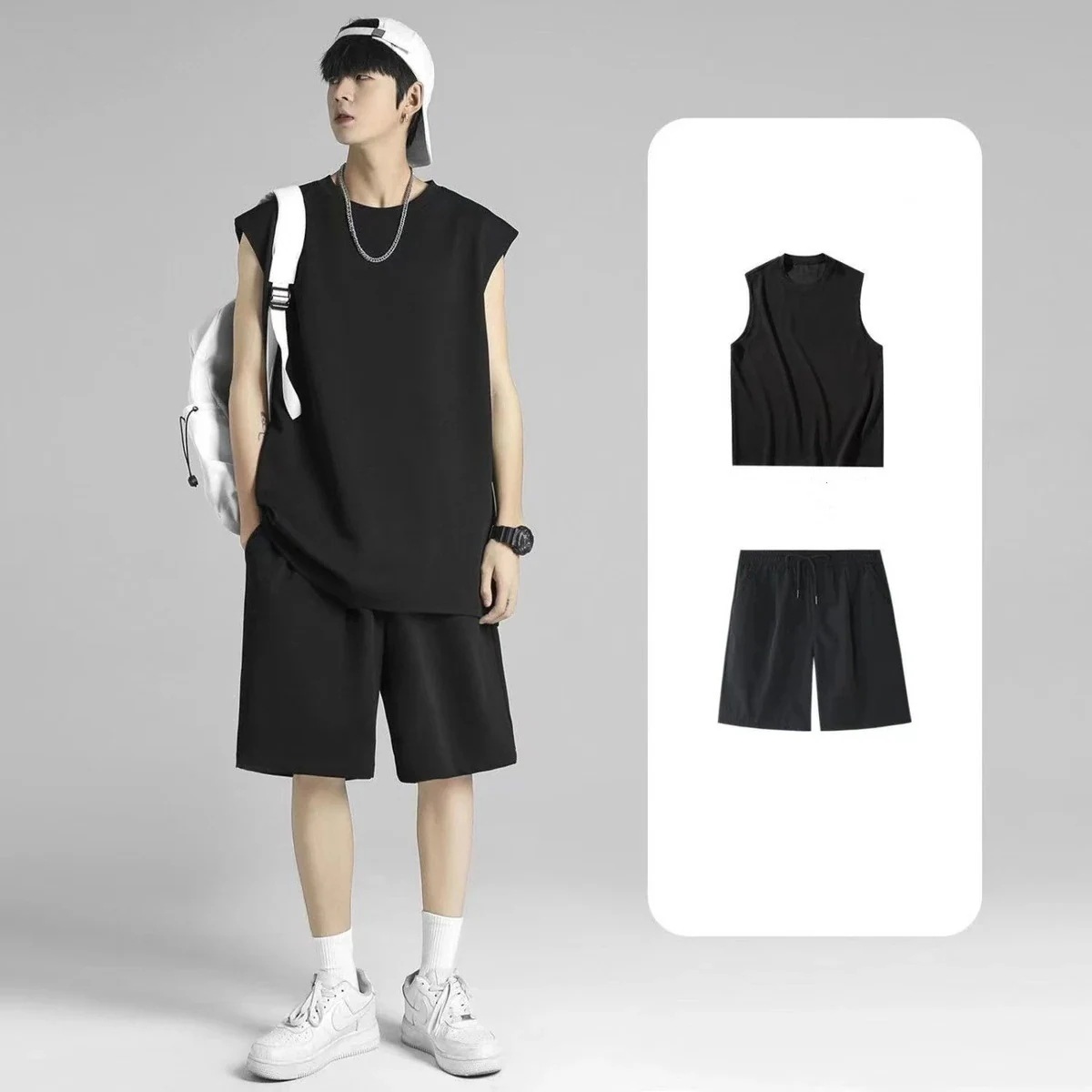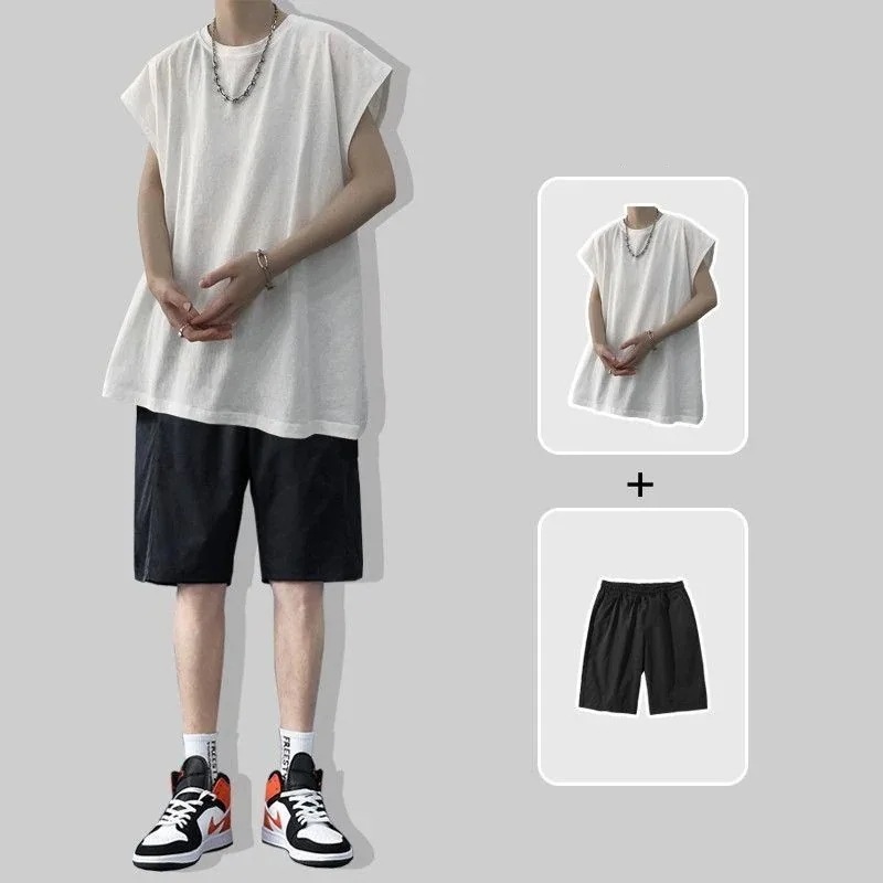 メンズ サマー カレッジ風 ノースリーブ トップス+ハーフパンツ 2点セット 個性 カジュアル 運動 セット