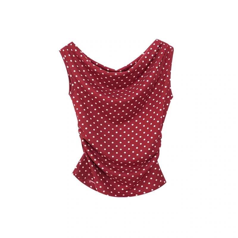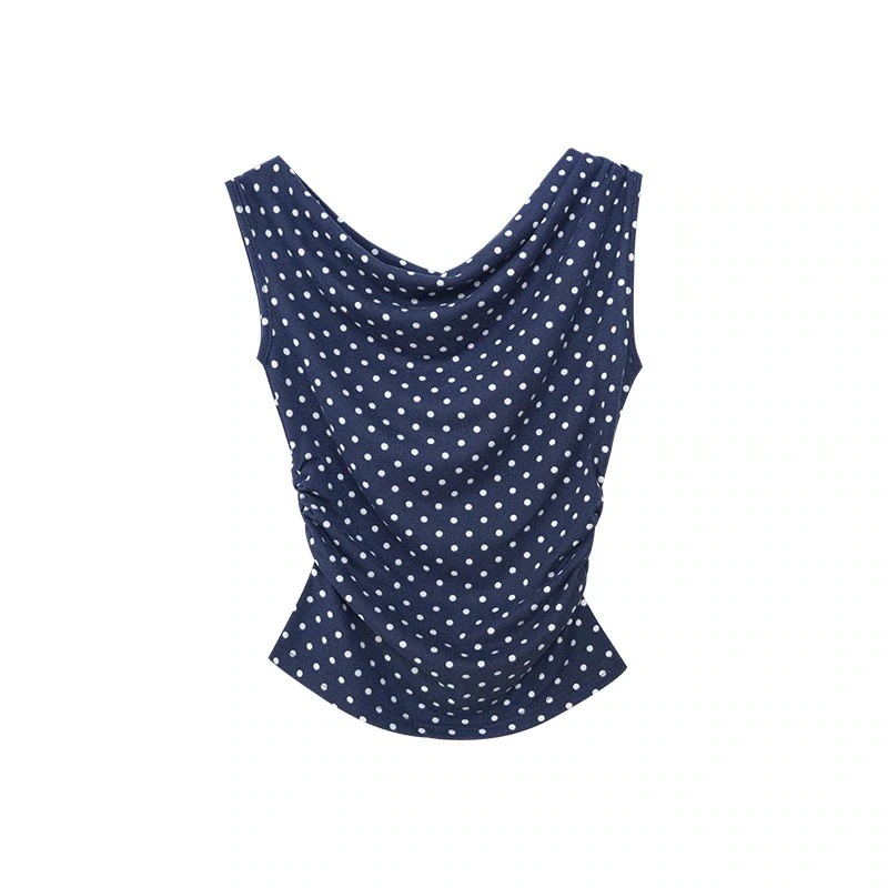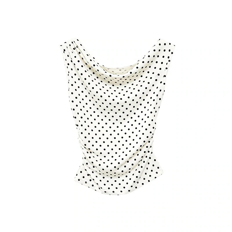 シャツ ドット柄 レディース トップス Tシャツ半袖 スリムフィット レディース T シャツ ドロップネック ポイント柄 無袖 ブラウス