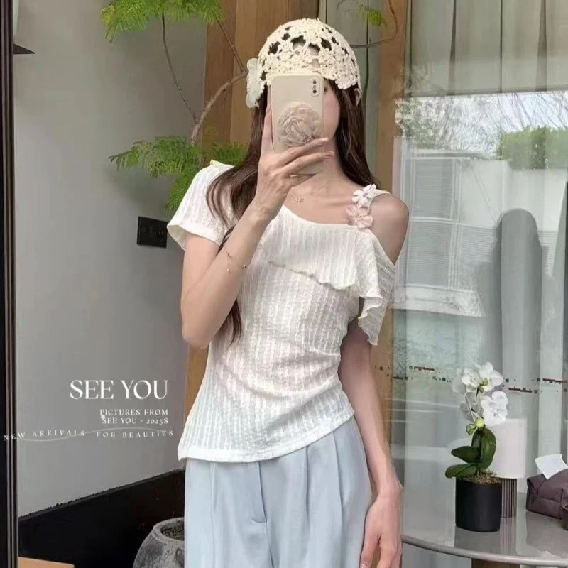 シャツ ドット柄 レディース トップス Tシャツ半袖オフショルダー 痩せ見え マルチスタイルトップス