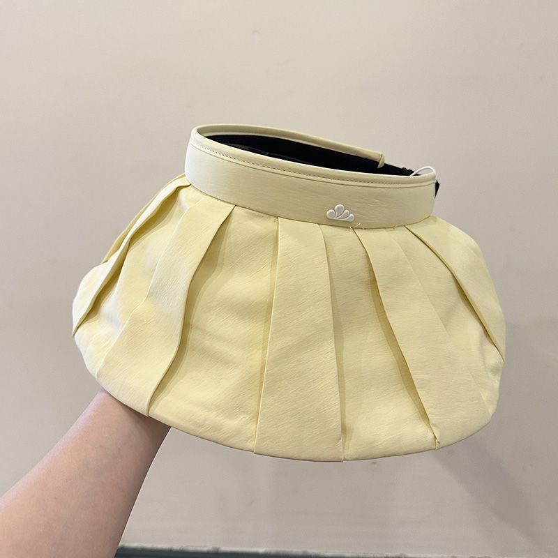 空のトップの日焼け止め帽子の女性は夏に旅行します