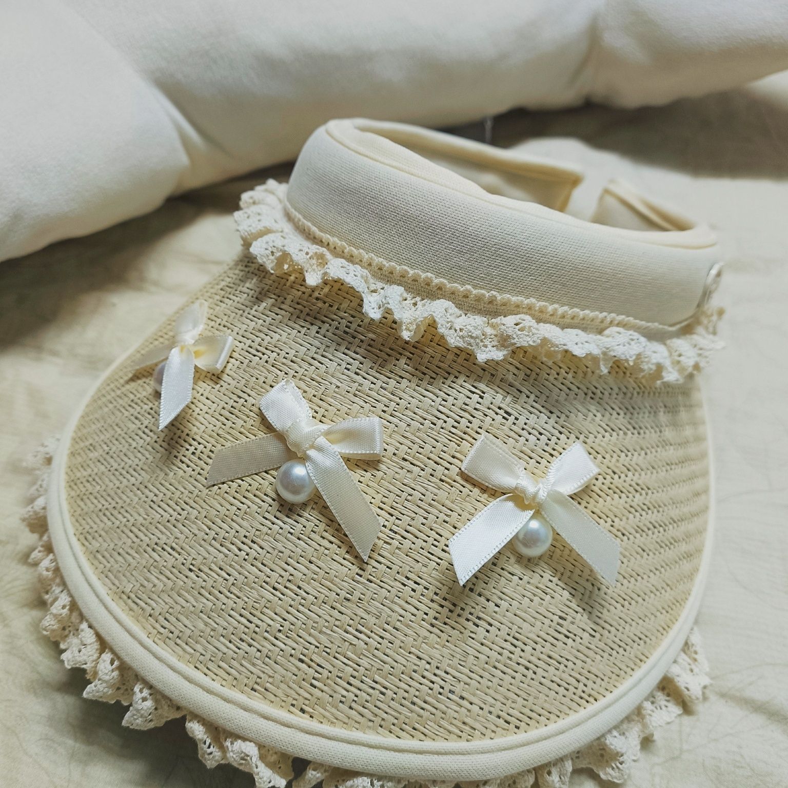 写真レースの麦わら帽子日焼け止めの空の帽子の蝶結びの麦わら帽子の日よけは自転車の屋外の砂浜に乗ります