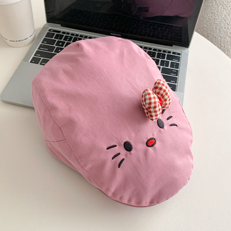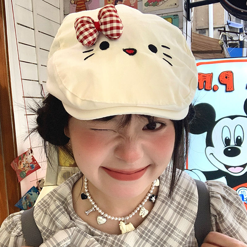 かわいい蝶結びの猫が前に入って帽子をかぶっています