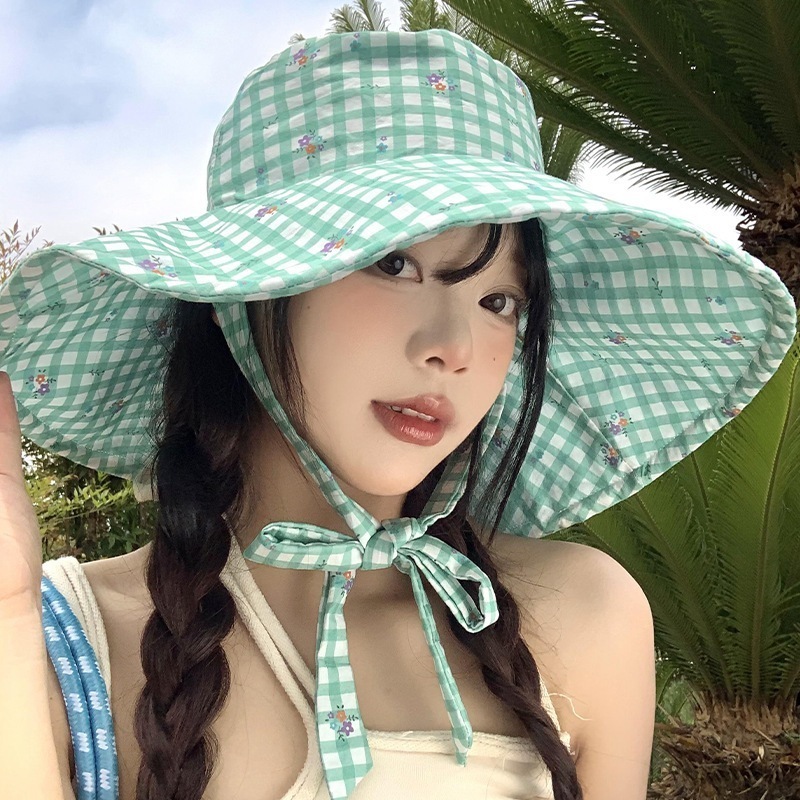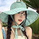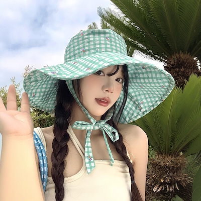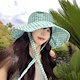 夏のミントのマンボの格子のひもの漁師の帽子の女性の大きいつばの日よけの日焼け止めの帽子は顔の小さい太陽の帽子を現します