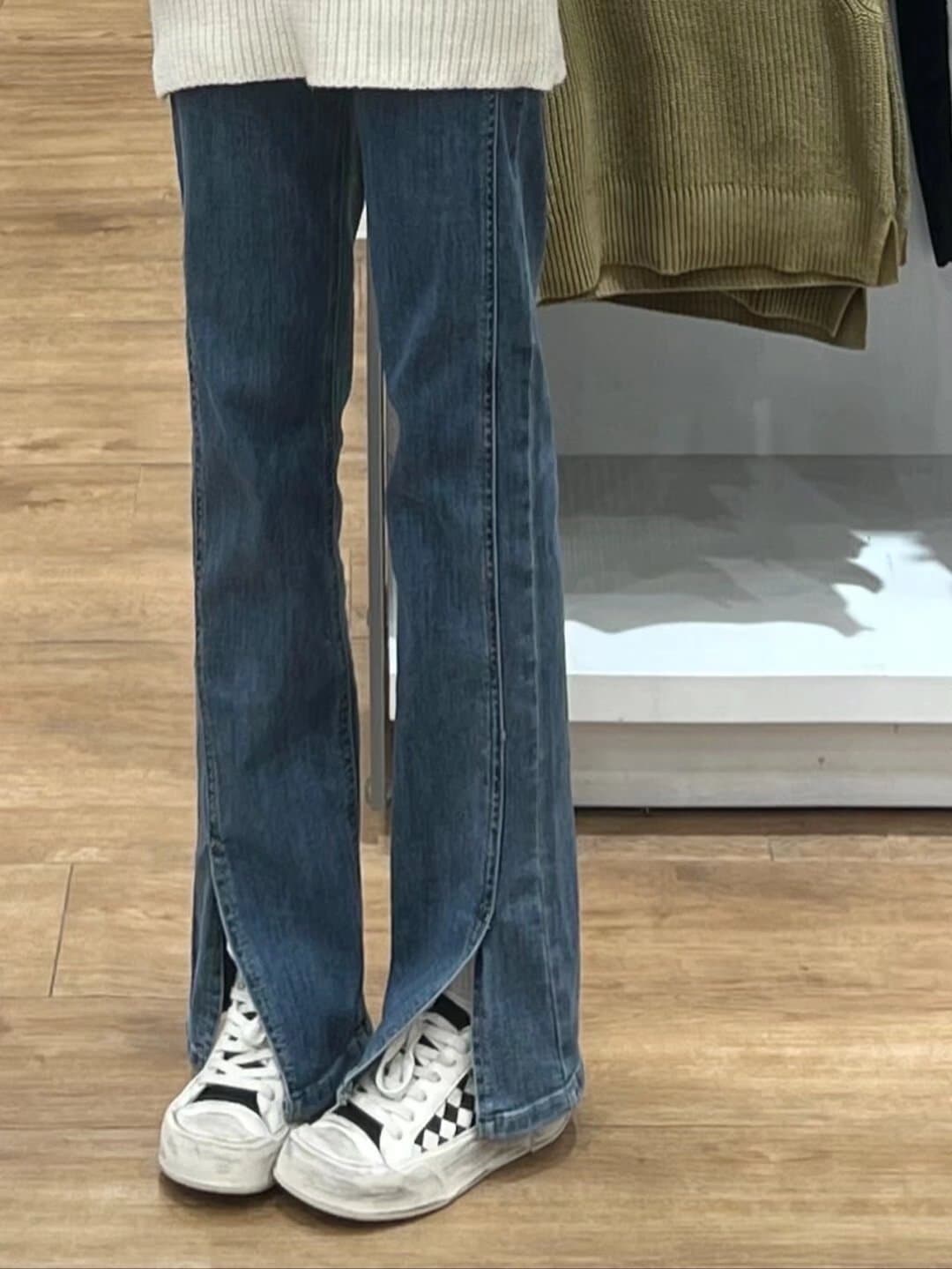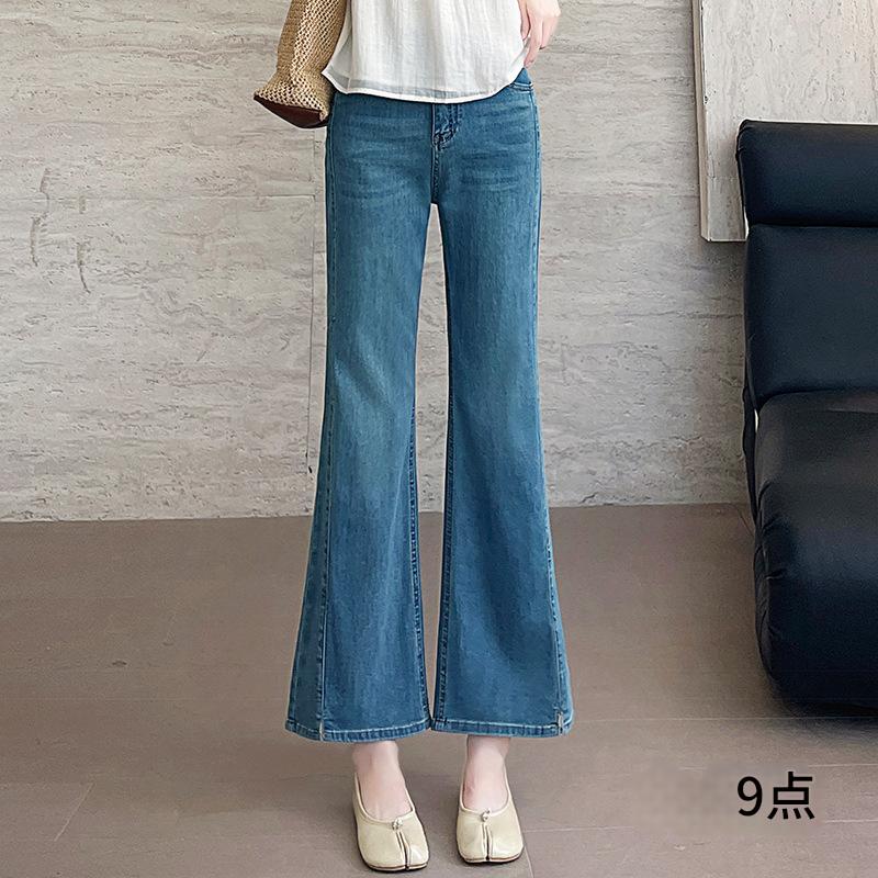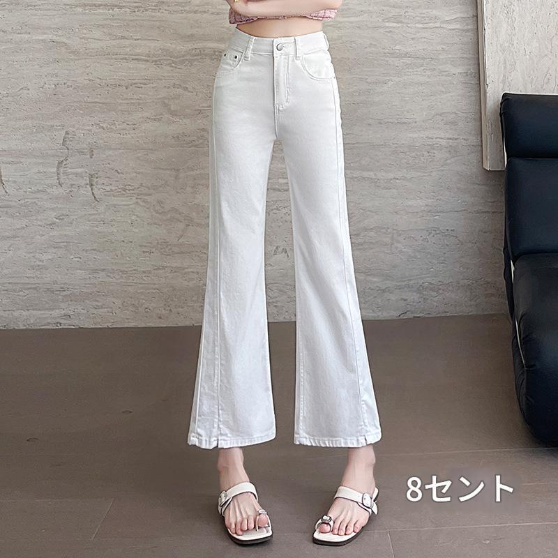 登场快速出荷レディース フレアデニムパンツ 26 新作 ハイウエスト ルーズシルエット ストレッチ カジュアル スリット入り 通勤に 着回し