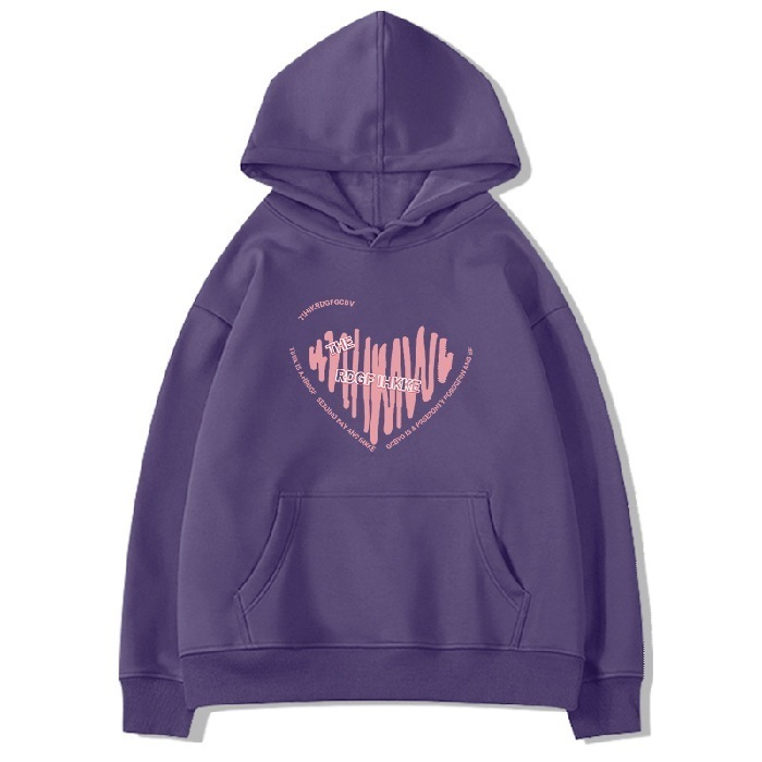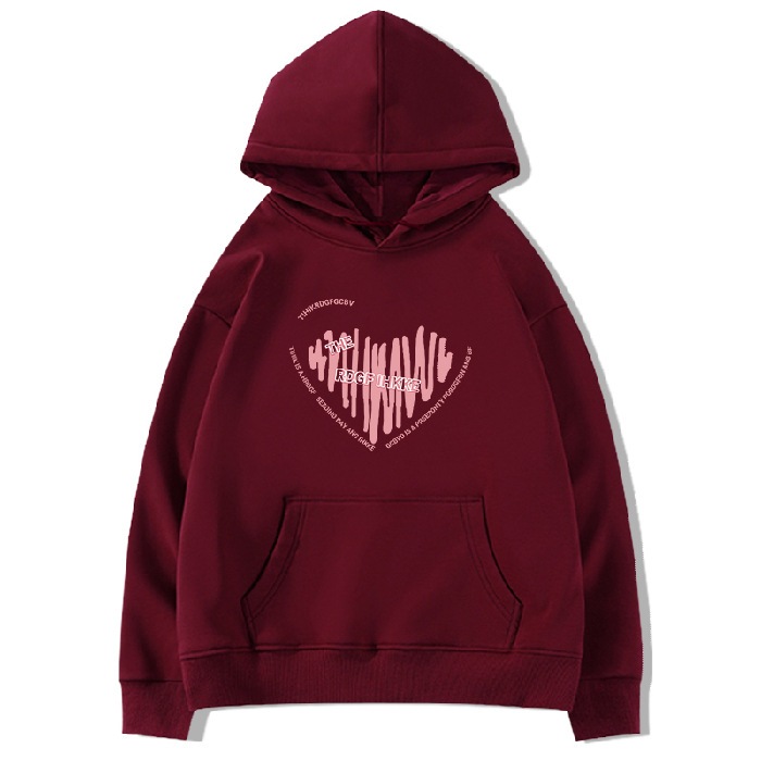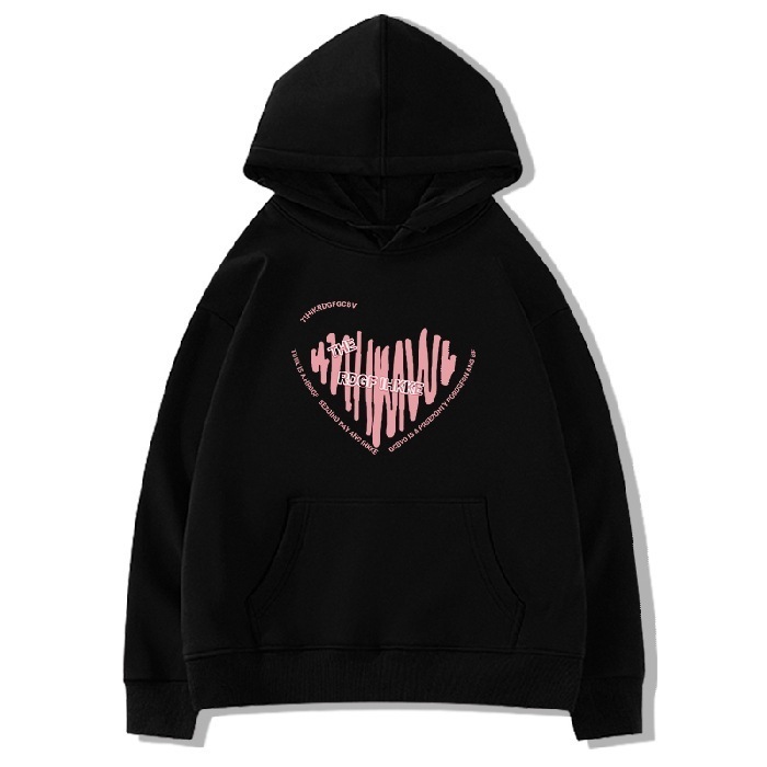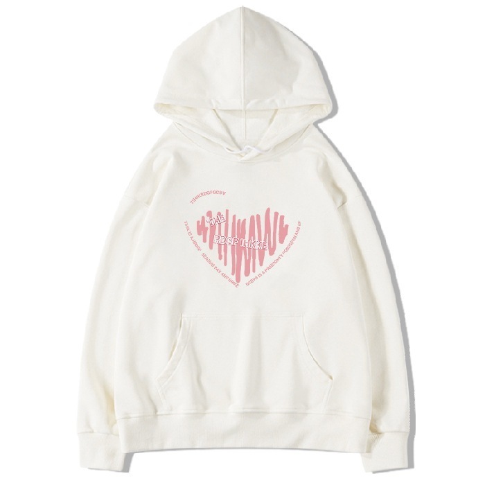 フードポケット付き女性ゆったり痩せ見えハートアルファベットトップストップコート長袖