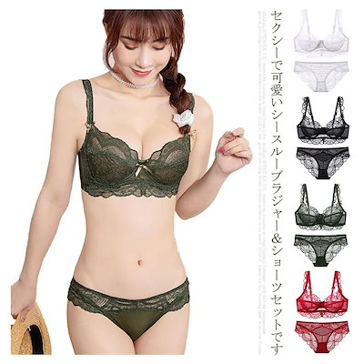 ブラジャーショーツセット総レースシースルーワイヤー入りノーパッドセクシー薄手可愛い大きいサイズ脇肉カバーバストアップ大工場製造