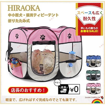 ペットハウスペットテント犬猫用マルチサイズ選択ペットケージ八面メッシュサークル折りたたみ式室内アウトドアシンブル肉球マック大工場製造
