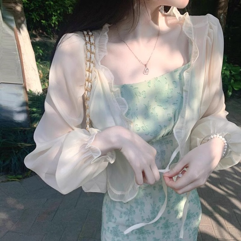 チュール UVカット カーディガン 羽織り 夏 キャミソール ワンピース アウター カーディガン オーガンジー トップス
