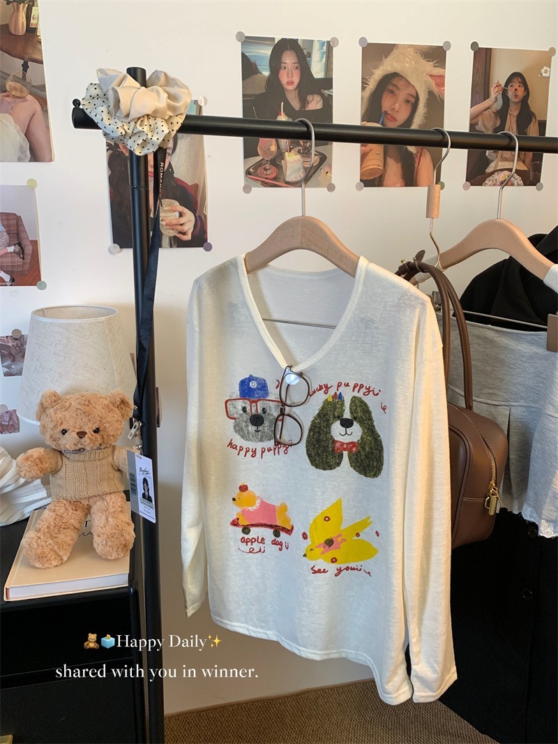 母の日ギフト 通気性 日焼け防止ブラウス 冷感 ゆったりとした大きめの襟ぐりの薄手日焼け止めカバーアップシャツ女性用夏物若見え効果のある漫画プリント長袖トップス