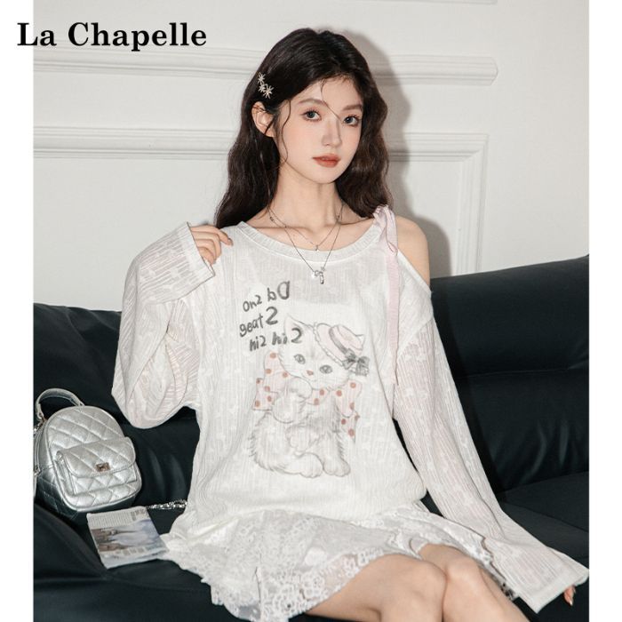 母の日ギフト 日焼け防止ブラウス 通気性 冷感 白いオフショルダー猫柄プリント長袖カバーアップ日焼け止めトップス(薄手)