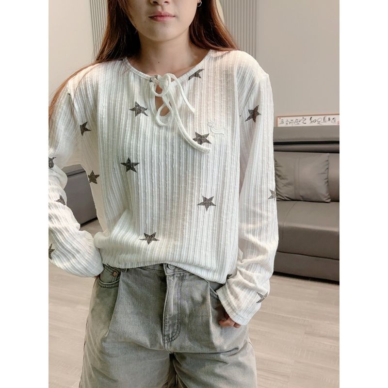 通気性 母の日ギフト 日焼け防止ブラウス 冷感 レトロな星柄プリントのリボン付き長袖シャツ春夏向けの女性用スリムフィット日焼け止めカジュアルトップス
