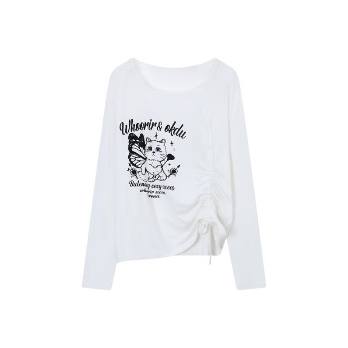 母の日ギフト 通気性 日焼け防止ブラウス 冷感 オリジナルテンセルリブ素材の猫柄プリントオフショルダートップス女性用薄手日焼け止めカバーアップトップス