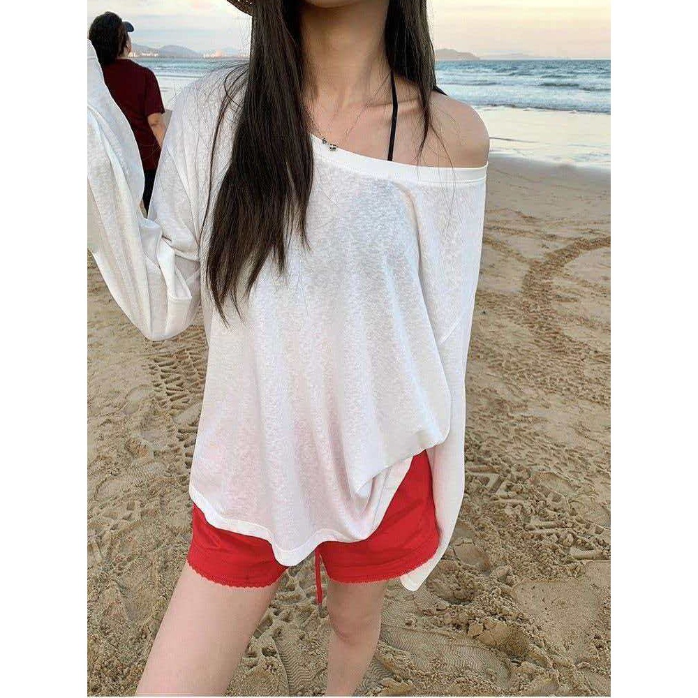 通気性 母の日ギフト 日焼け防止ブラウス 冷感 女性用日焼け止め服夏の新作ゆったりで控えめなデザイン微透けの薄手アイスシルク水着トップス