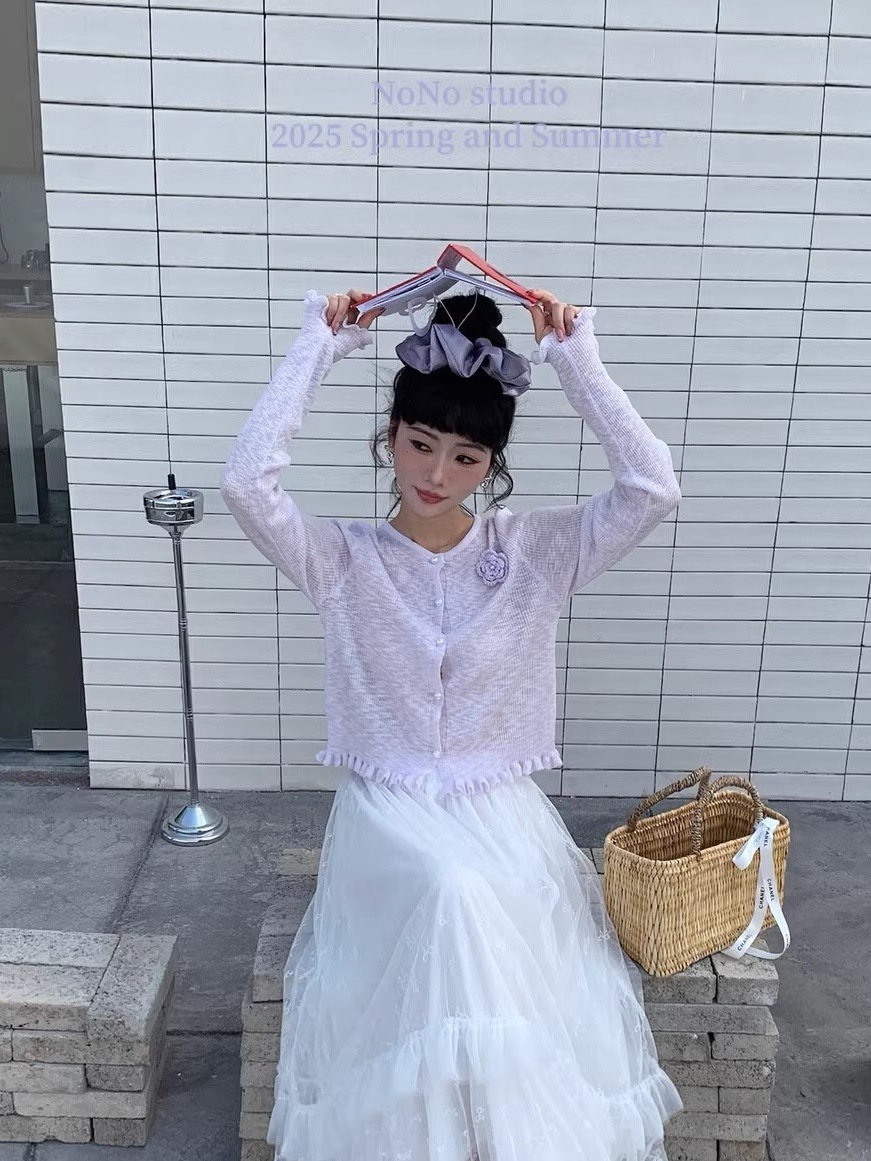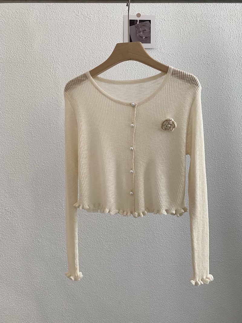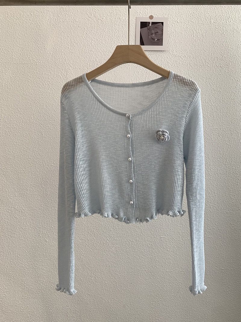 日焼け防止ブラウス 母の日ギフト 通気性 冷感 優しい雰囲気の長袖日焼け止めカバーアップ女性用夏物ショート丈立体花柄ニットカーディガン多用途カジュアルアウタートップス