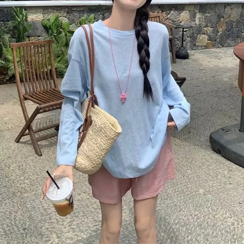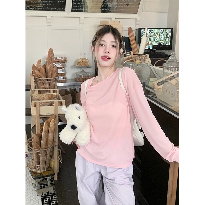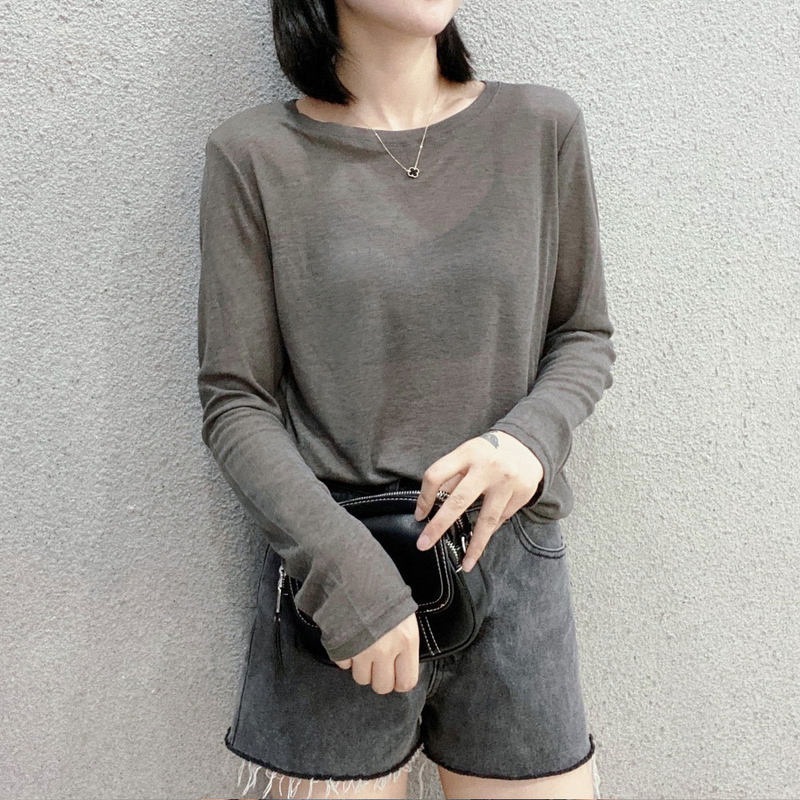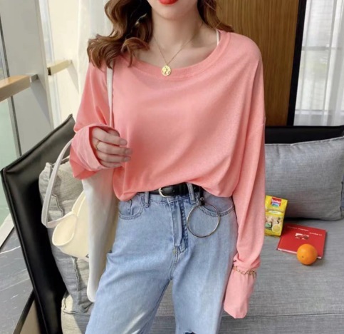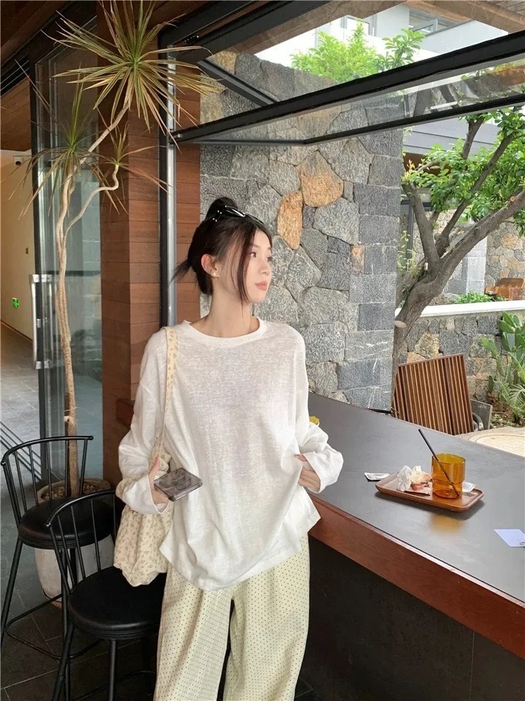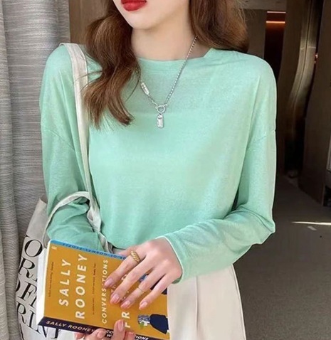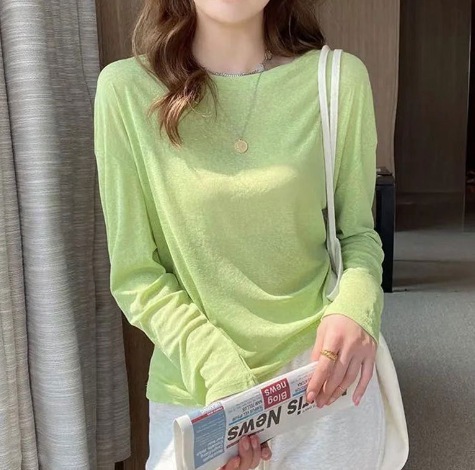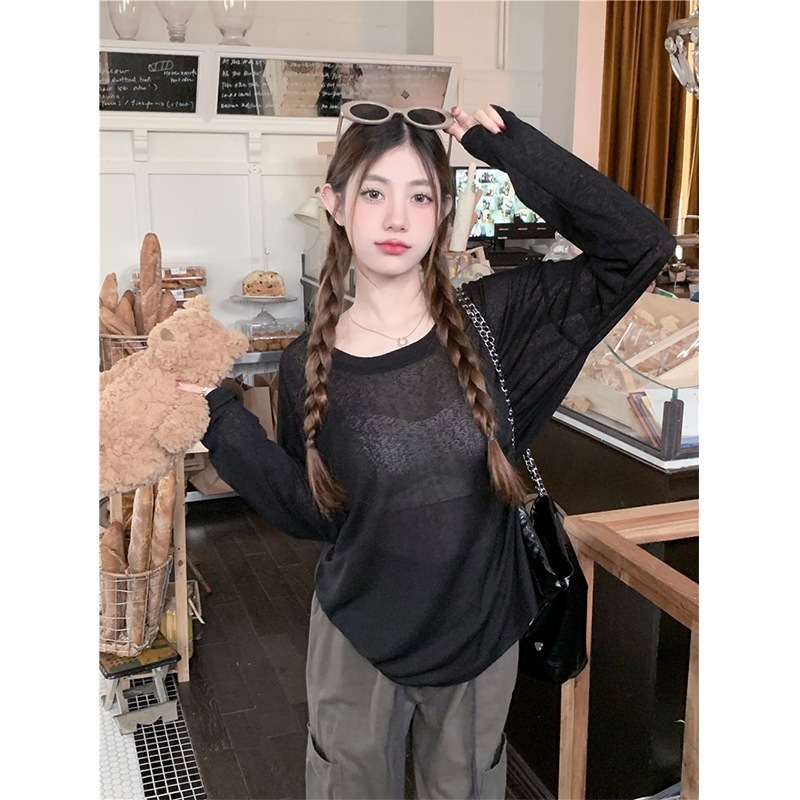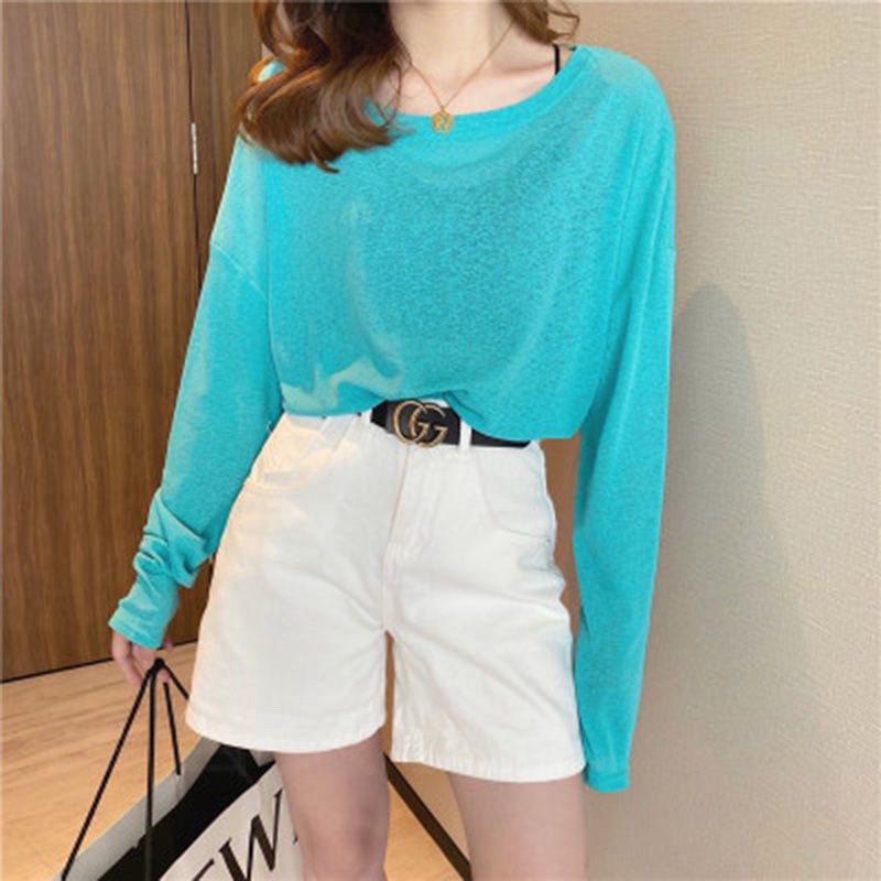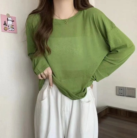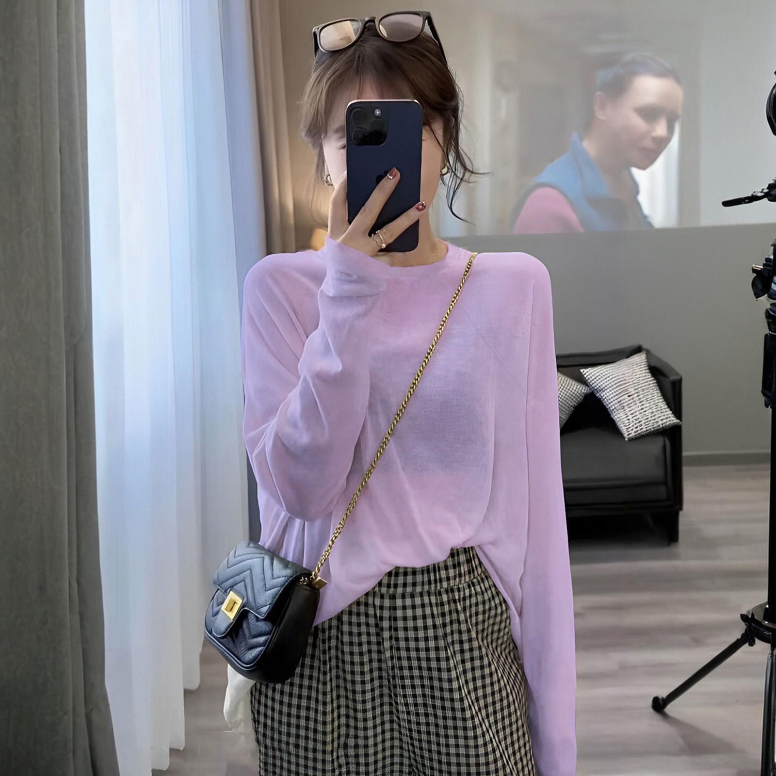 通気性 母の日ギフト 日焼け防止ブラウス 冷感 薄手のアイスシルク日焼け止めカバーアップ夏の新作ゆったりとした長袖エアコンシャツルーズフィットのプルオーバーラウンドネックトップス