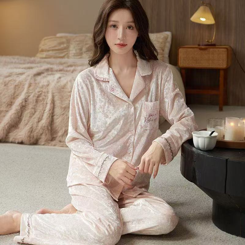 新登場ハイクラス薄手ボアジャカード ウェア上下セット 外出可能 パジャマ