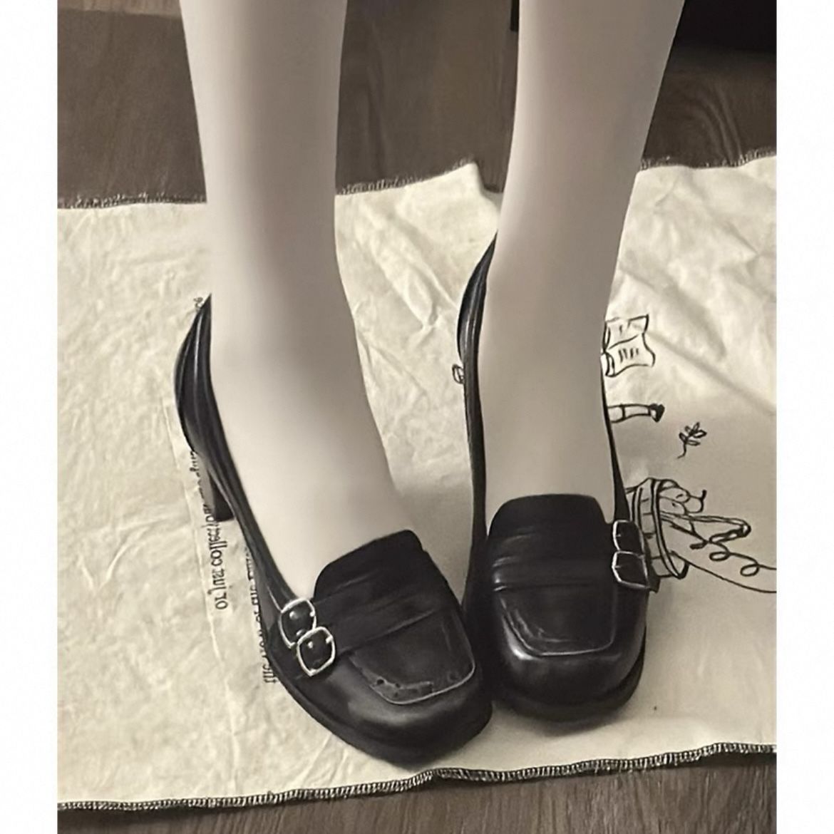 英倫 学園 レザー バックル 太め ヒール ハイヒール 小さい 革靴 2026 スカート 合わせ ローファー