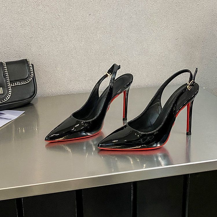 軽奢 ロマンチック セクシー スタイリッシュ ヌード エナメル 浅口 ハイヒール レディース 細め ヒール シングルシューズ 後ろ 空 スタイリッシュ サンダル 先細