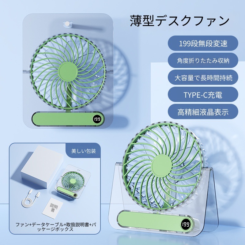 卓上扇風機 充電式 ミニ扇風機 ハンディファン 薄型 オフィスファン 静音強風 おしゃれ 省エネ 低騒音 簡単操作 季節家電