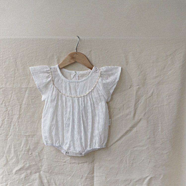 ベビー服夏の新作,女の子の赤ちゃんの無地透かし刺繍のロンパース,新生児用上着,子供服半袖シャツ