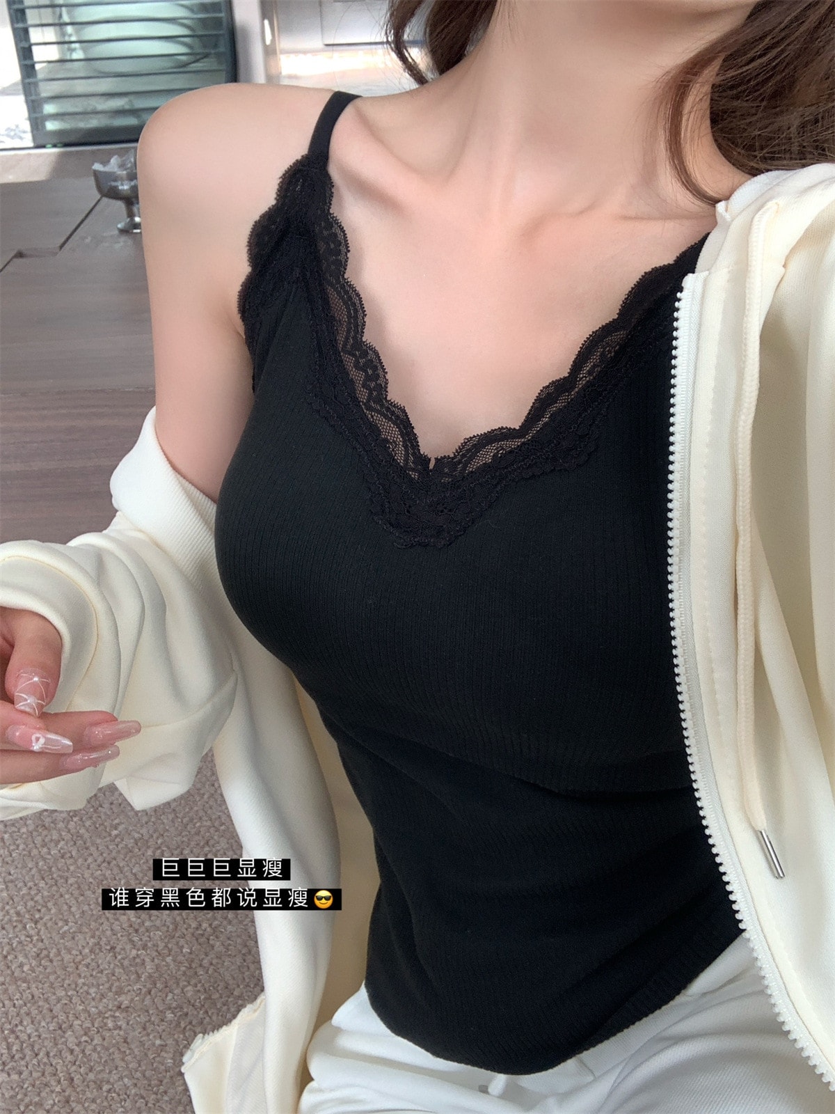 25 裏起毛 レース キャミソール 保暖 タンクトップ カップ付き インナー レディースファッション