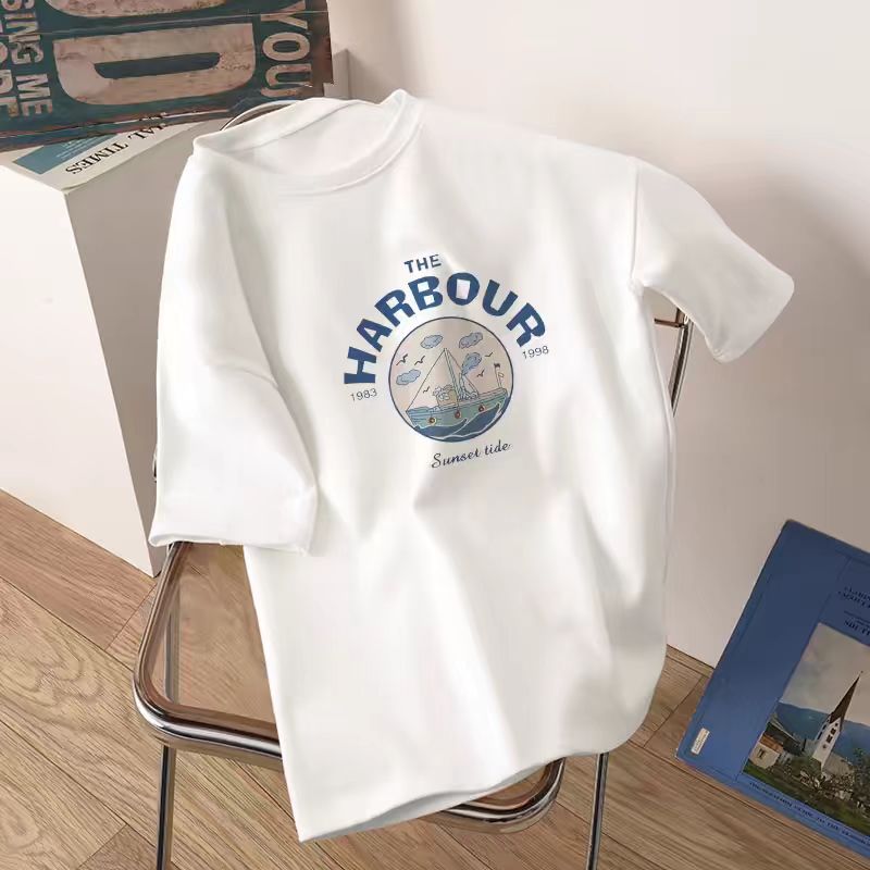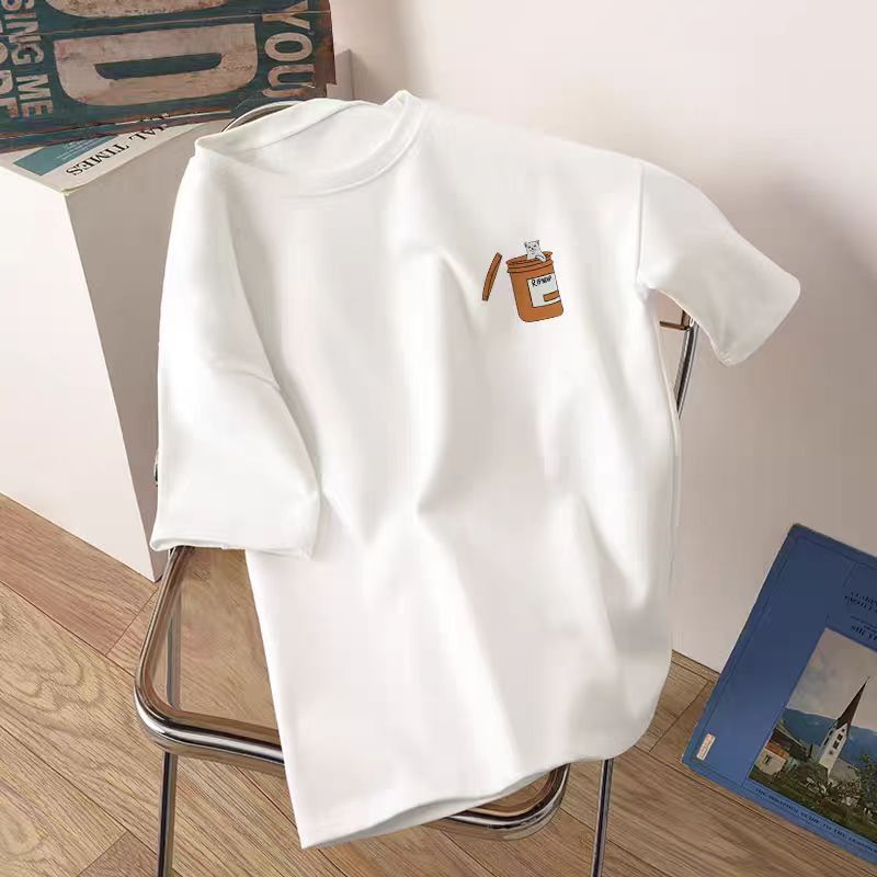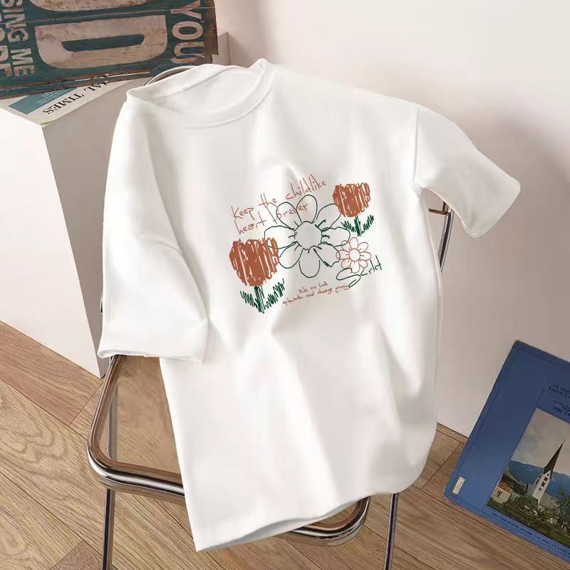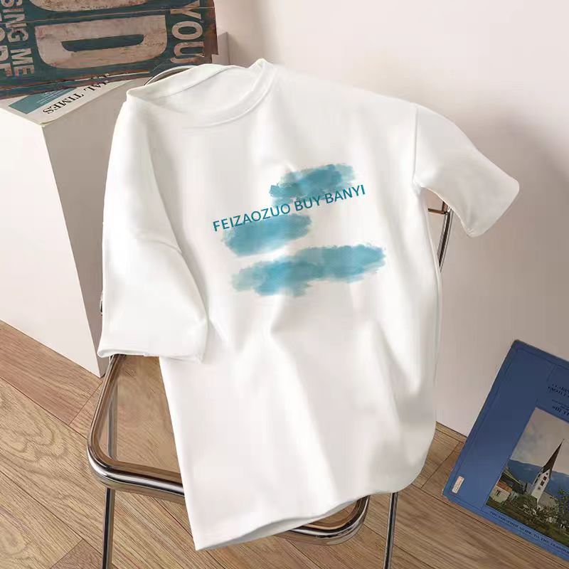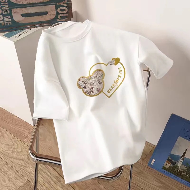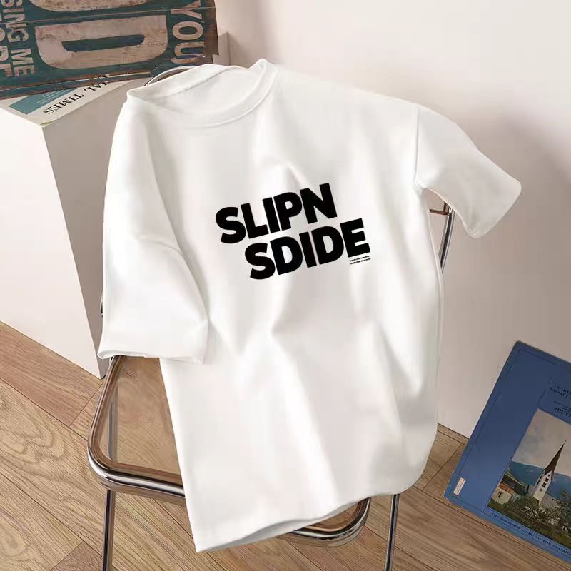 オーバーサイズT 正肩 半袖 ホワイト Tシャツ レディース クルーネック インナー ボトムス ゆったり ビッグサイズ シンプル 小 プリント おしゃれ