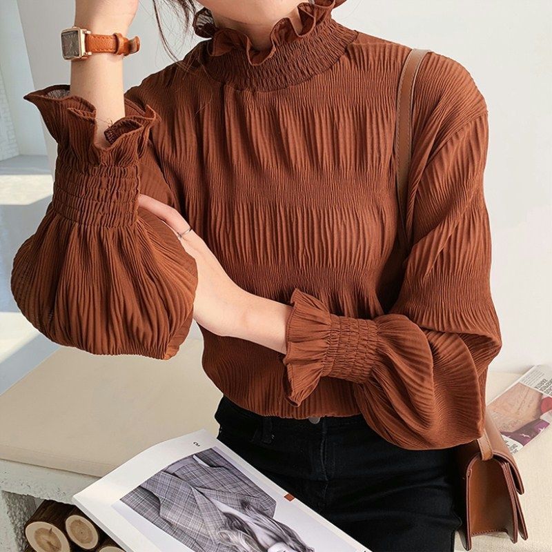 26 長袖 シフォンブラウス 大きいサイズ レース フリル ック キュート インナー シャツブラウス トップス レディース