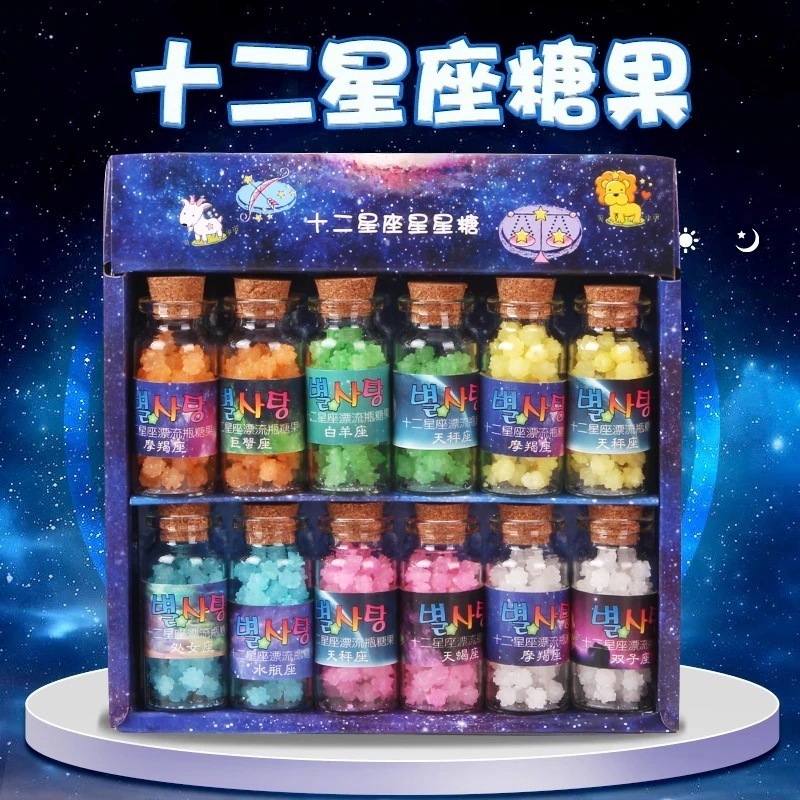 14Pcs クリエイティブな12星座の願いボトルスターキャンディギフトボックスガールフレンドへのギフトフルーツハードキャンディカジュアルスナック 誕生日プレゼント 子供の贈り物 誕生日プレゼント