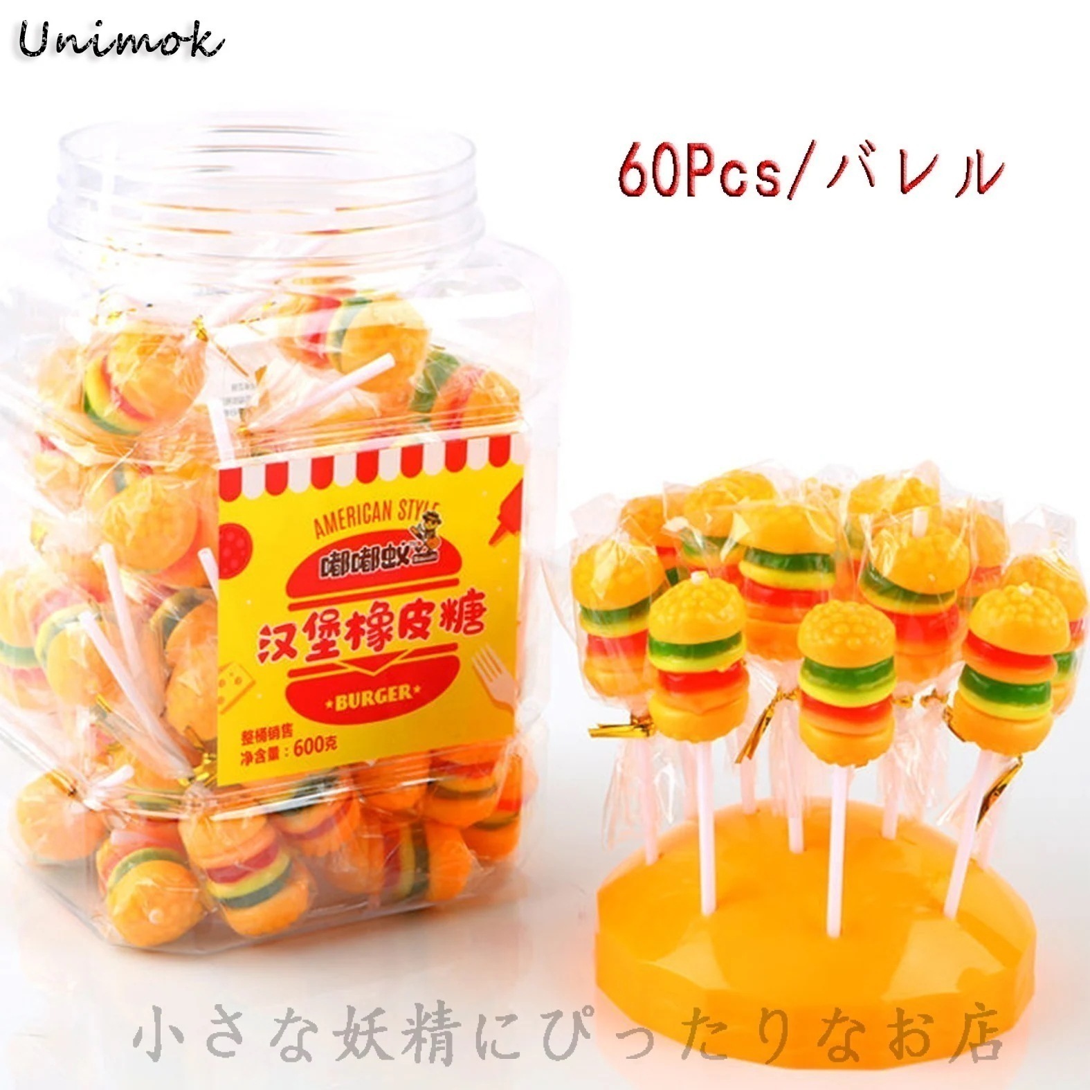 60Pcs ミニ ハンバーガー キャンディー グミ ロリポップ Qフルーツ風味のガム キャンディー キッズ スナック 子供用キャンディー スーパーマーケット 誕生日プレゼント