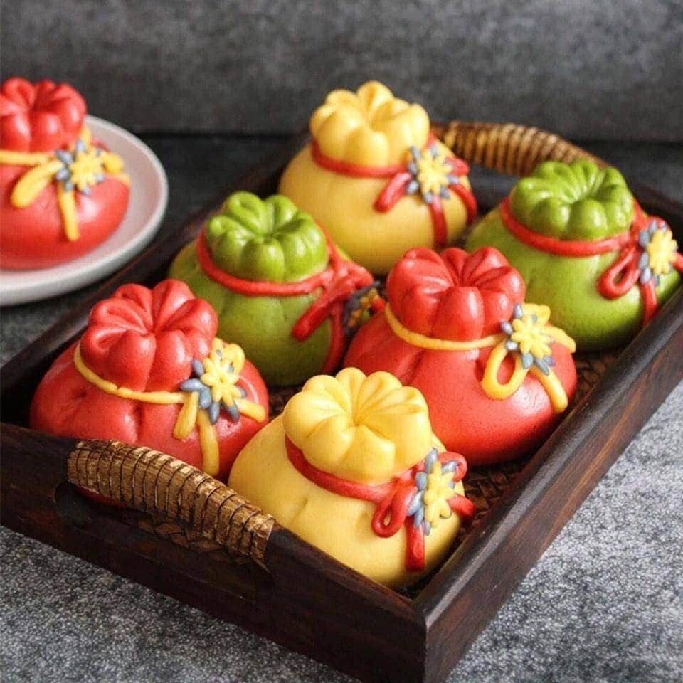 612Pcs 果物と野菜の詰め物とあんこの詰め物が入ったお正月のお金袋の朝食型バッグお正月の花のパンのりのペストリー誕生日の贈り物子供の日の贈り物