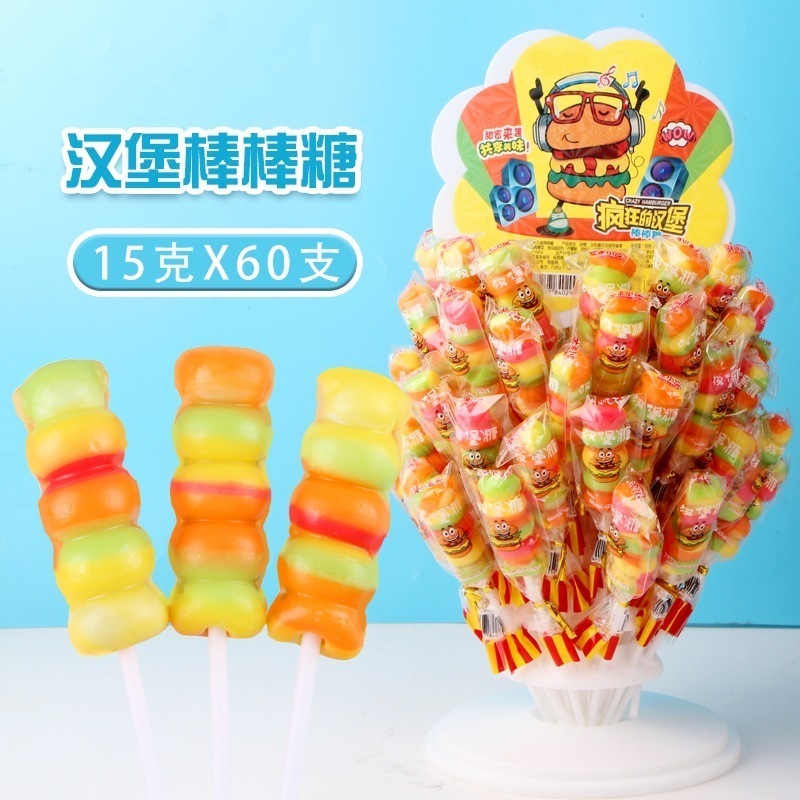 漫画のハンバーガーロリポップラックフルーツ風味のキャンディー子供用スナック お菓子 大人 子供 誕生日プレゼント
