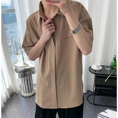 レビュー続々 韓国ファッション 半袖 五分袖 スリム シャツ カップル デザインセンス