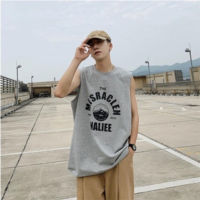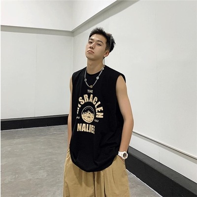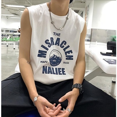 細見えする 激安セール 男性 学院風 スポーツ タンクトップ bf カジュアル プリント 袖なし ベスト 2021 夏 新品 個性 トレンド ゆったりする 大人気